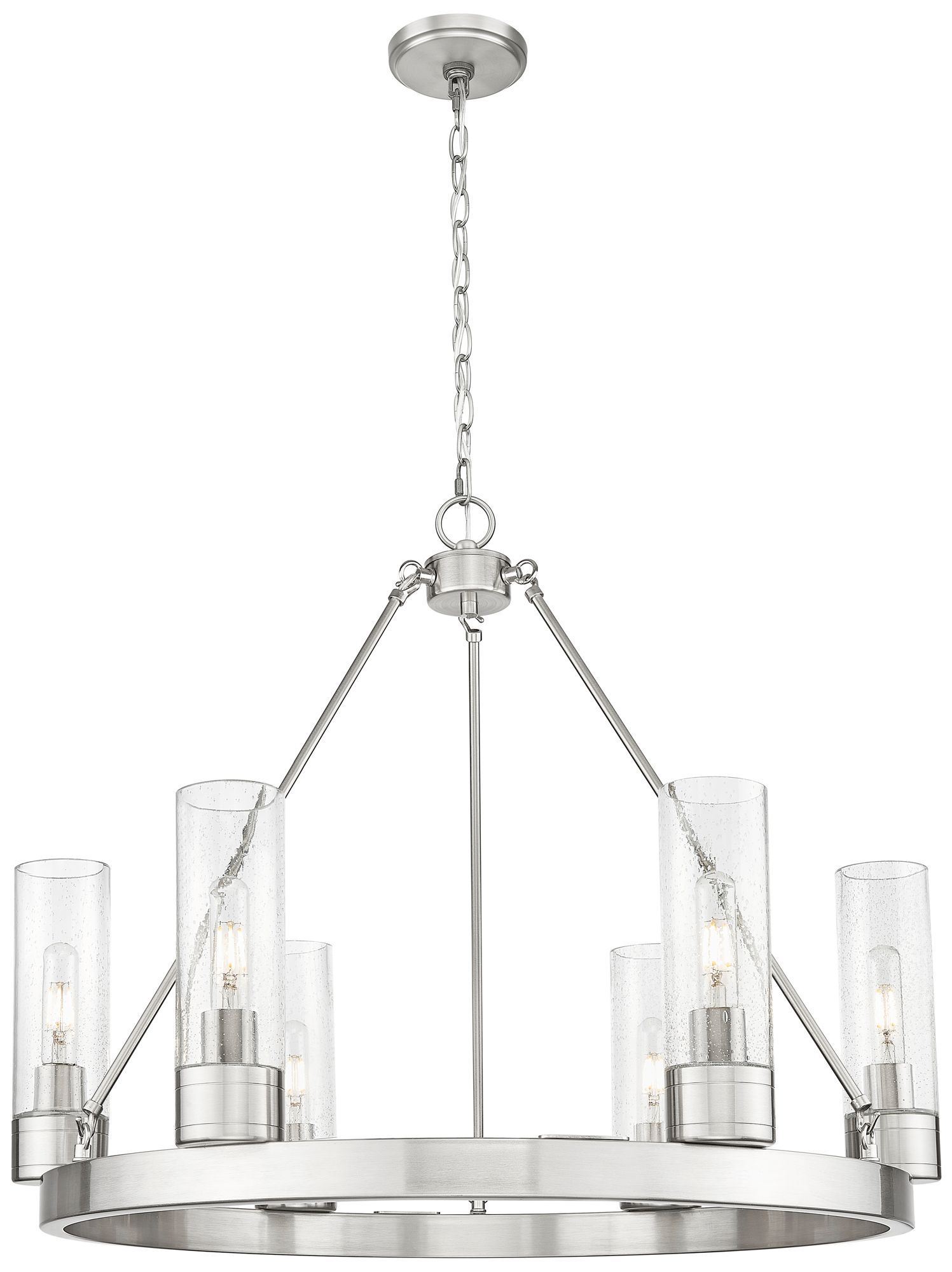 Boreas 29" Wide 6 Light Satin Nickel Chandelier With 8" Seedy Shade