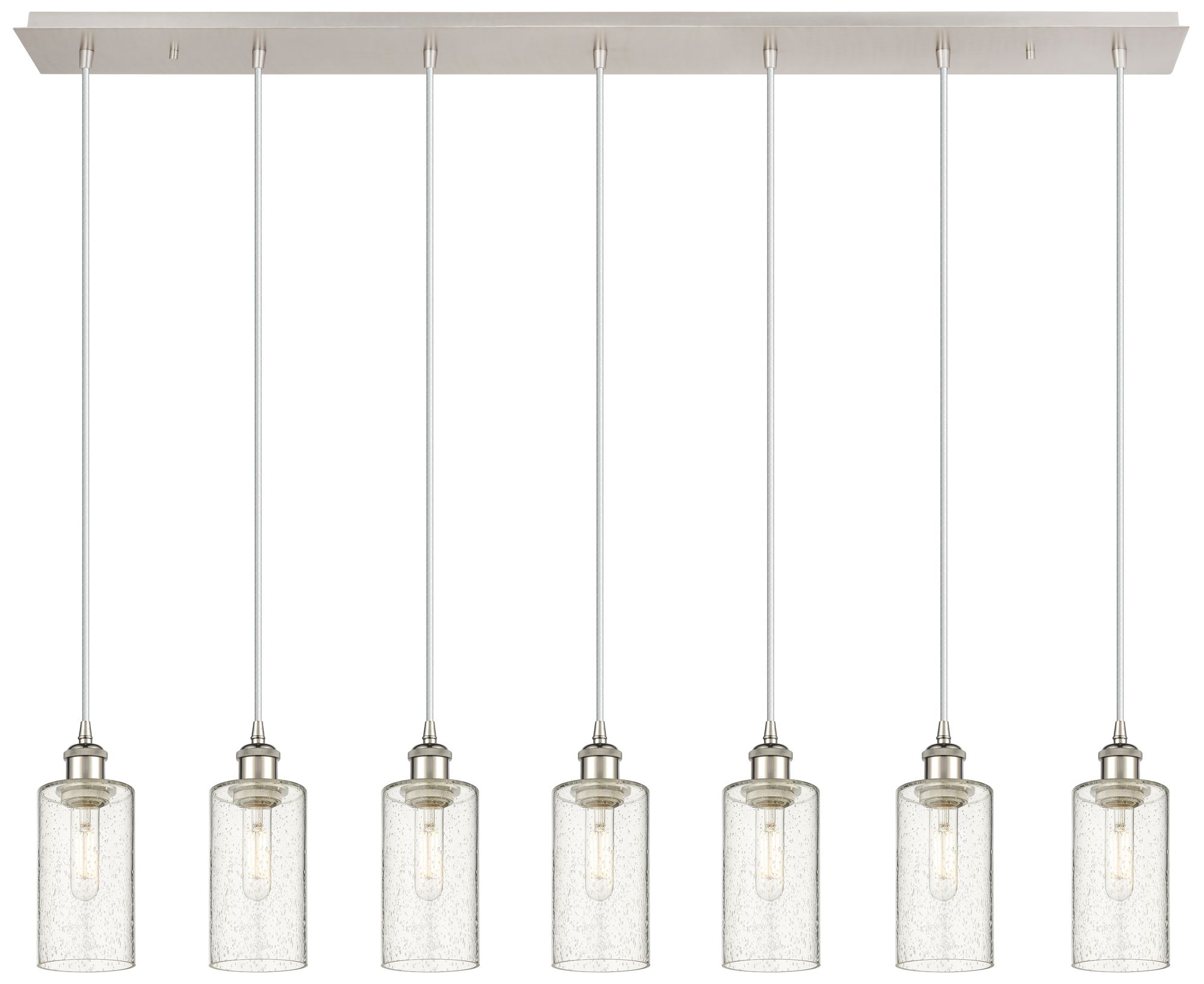 Crown Point 7 Light 49" Cord Hung Linear Pendant Nickel w/ Seedy Shade