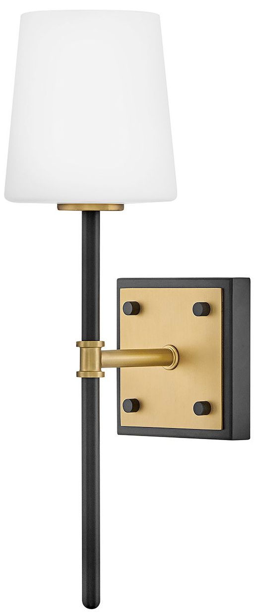 Hinkley Saunders Medium Sconce 16" Black w/ Lacquered Brass accents