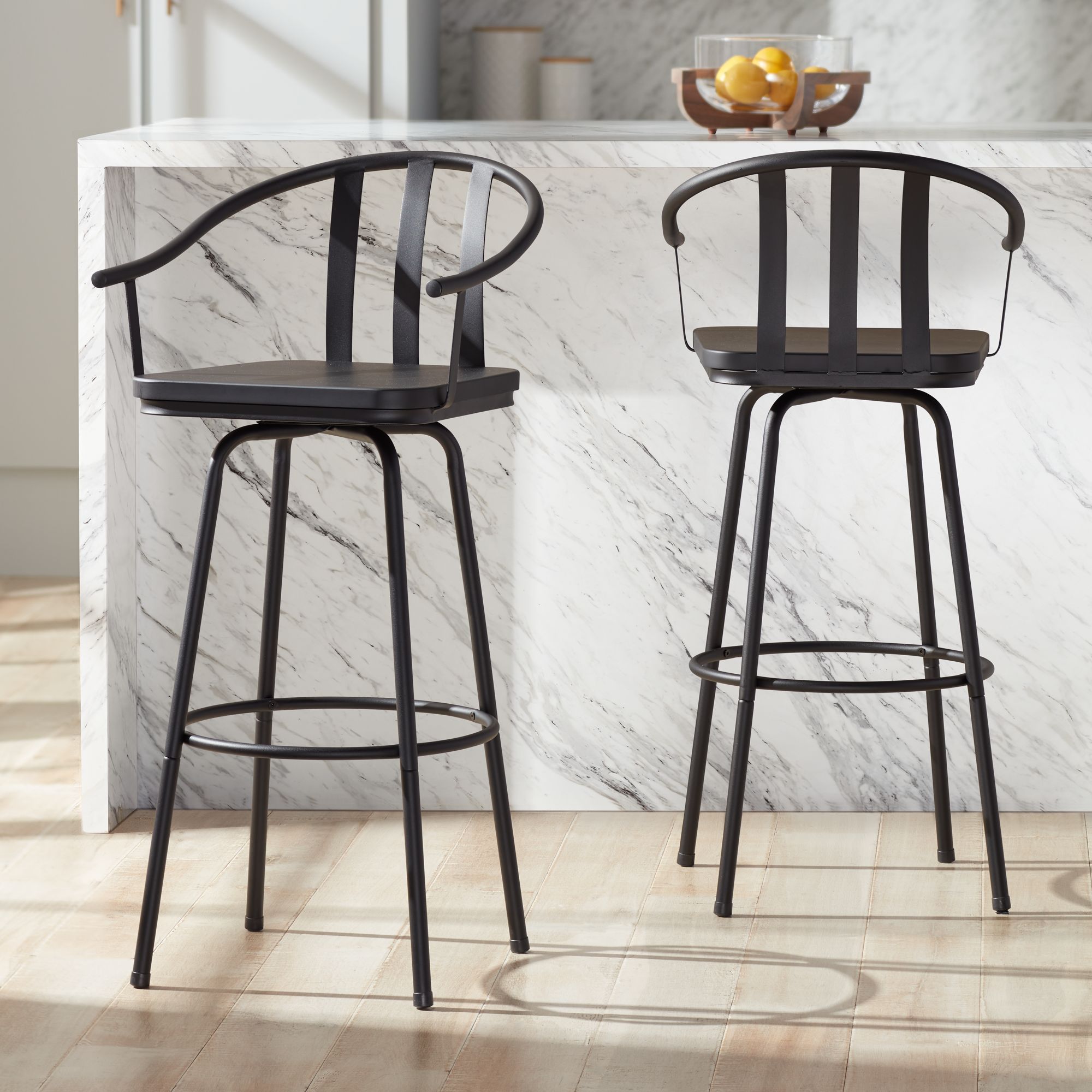 Lael 25 1/4" Black Metal and Wood Swivel Counter Stools Set of 2