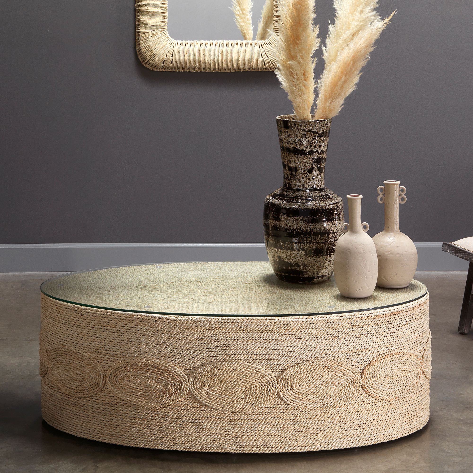 Jamie Young Barbados 50" Wide Oval Corn Straw Rope Coffee Table