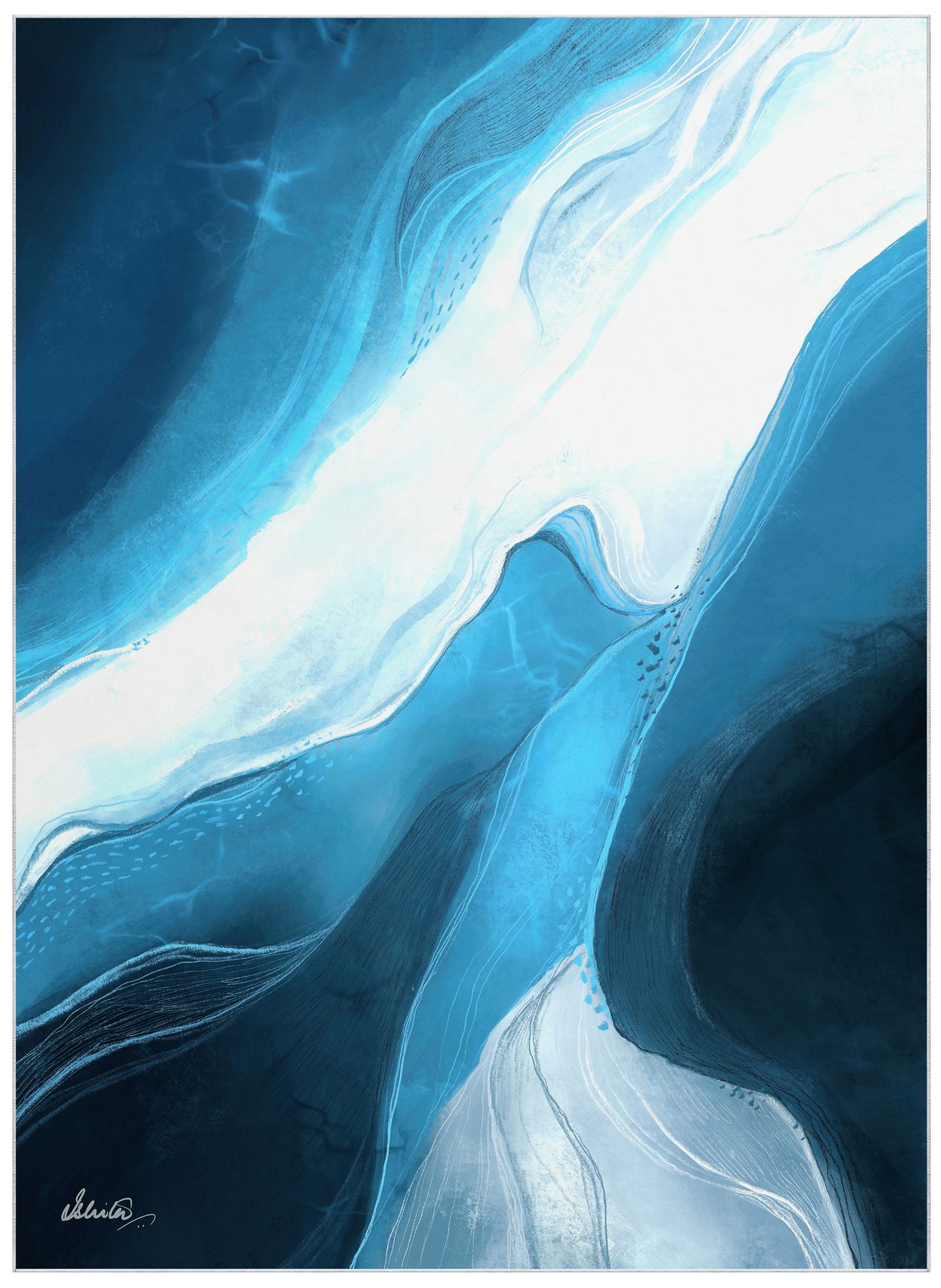 Ethereal Iceberg Washable Abstract Art Area Rug size 8'x10'