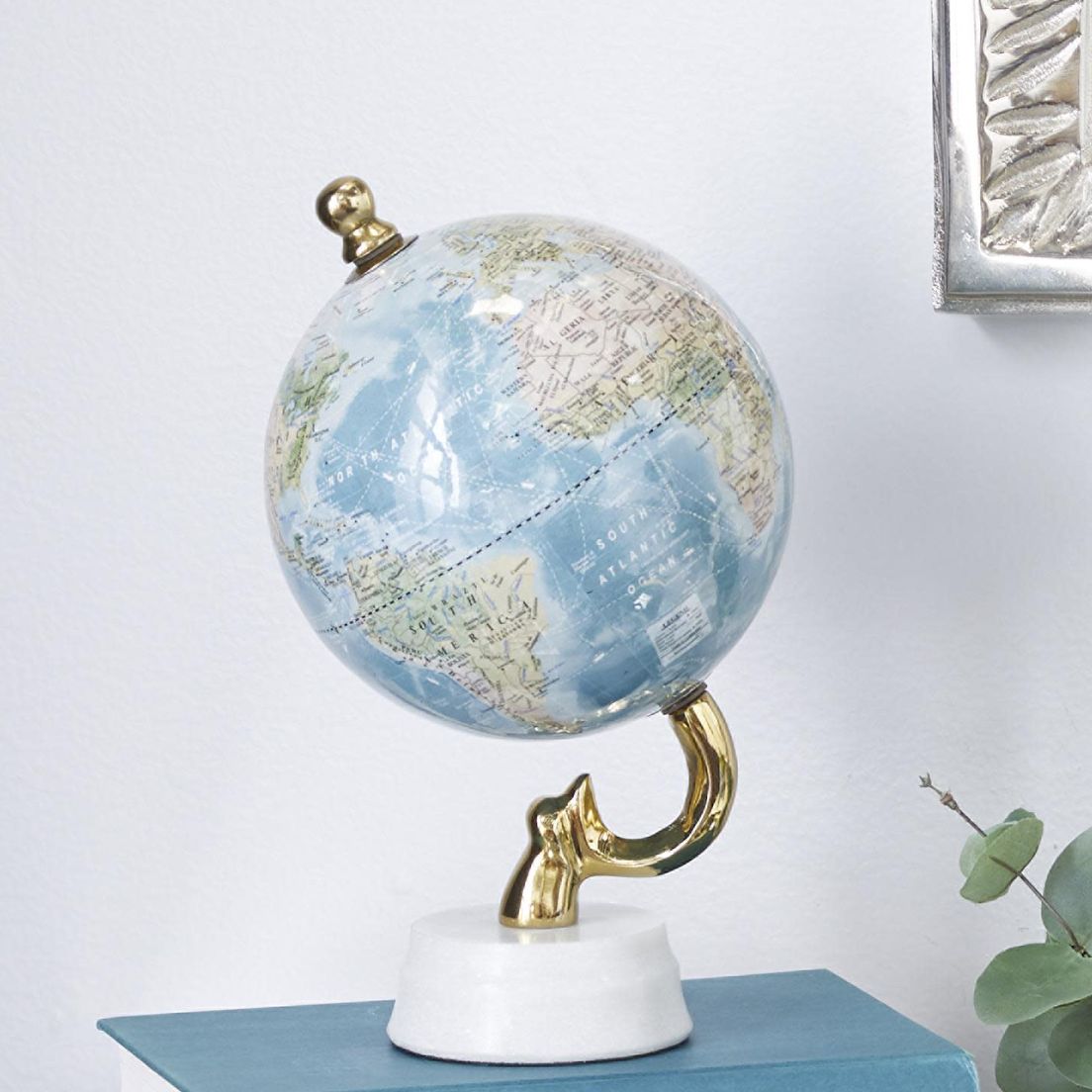 Blue Aluminum Metal Coastal Globe, 6" x 6" x 11"