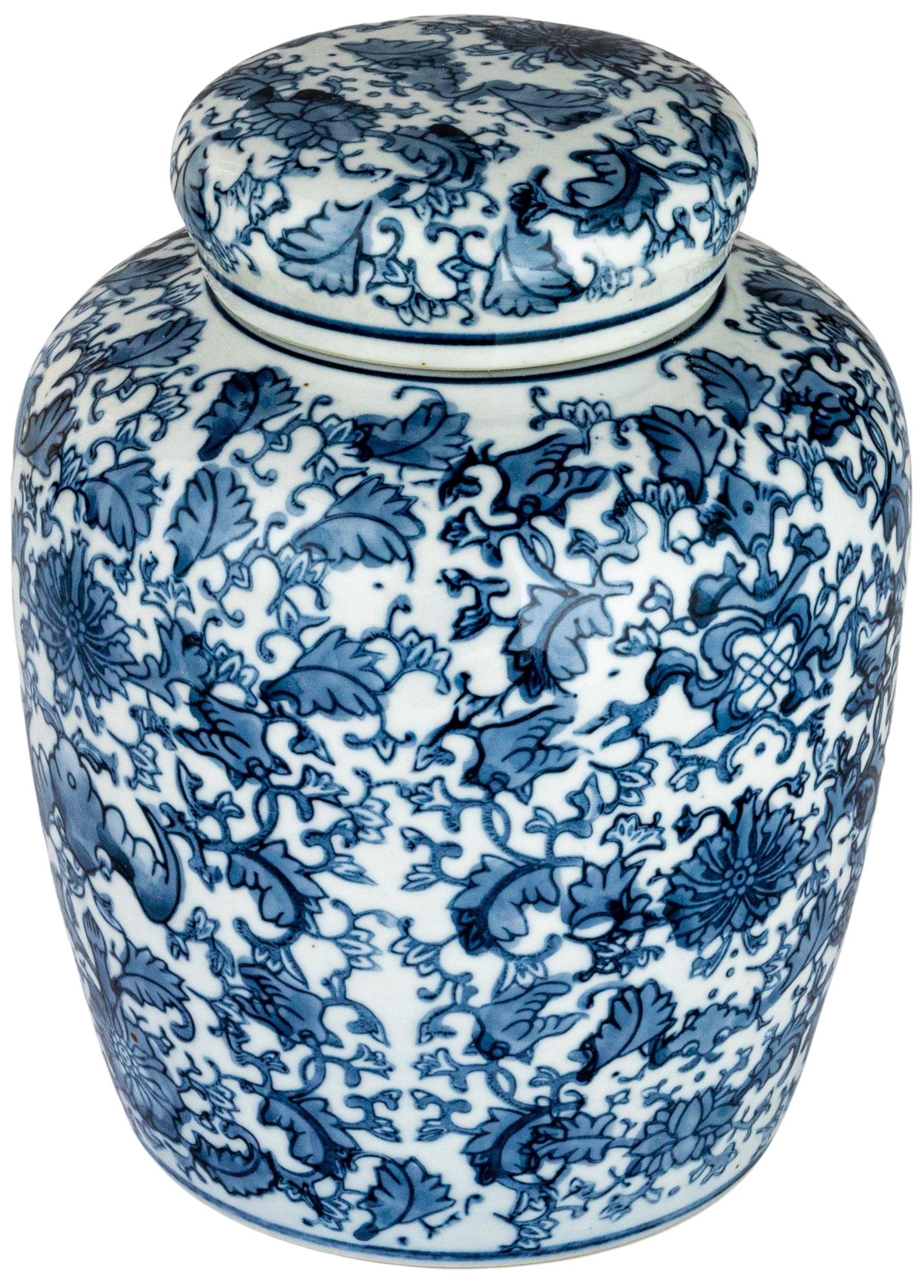 Decorative Ceramic Ginger Jar with Lid for Spaces, Blue and White
