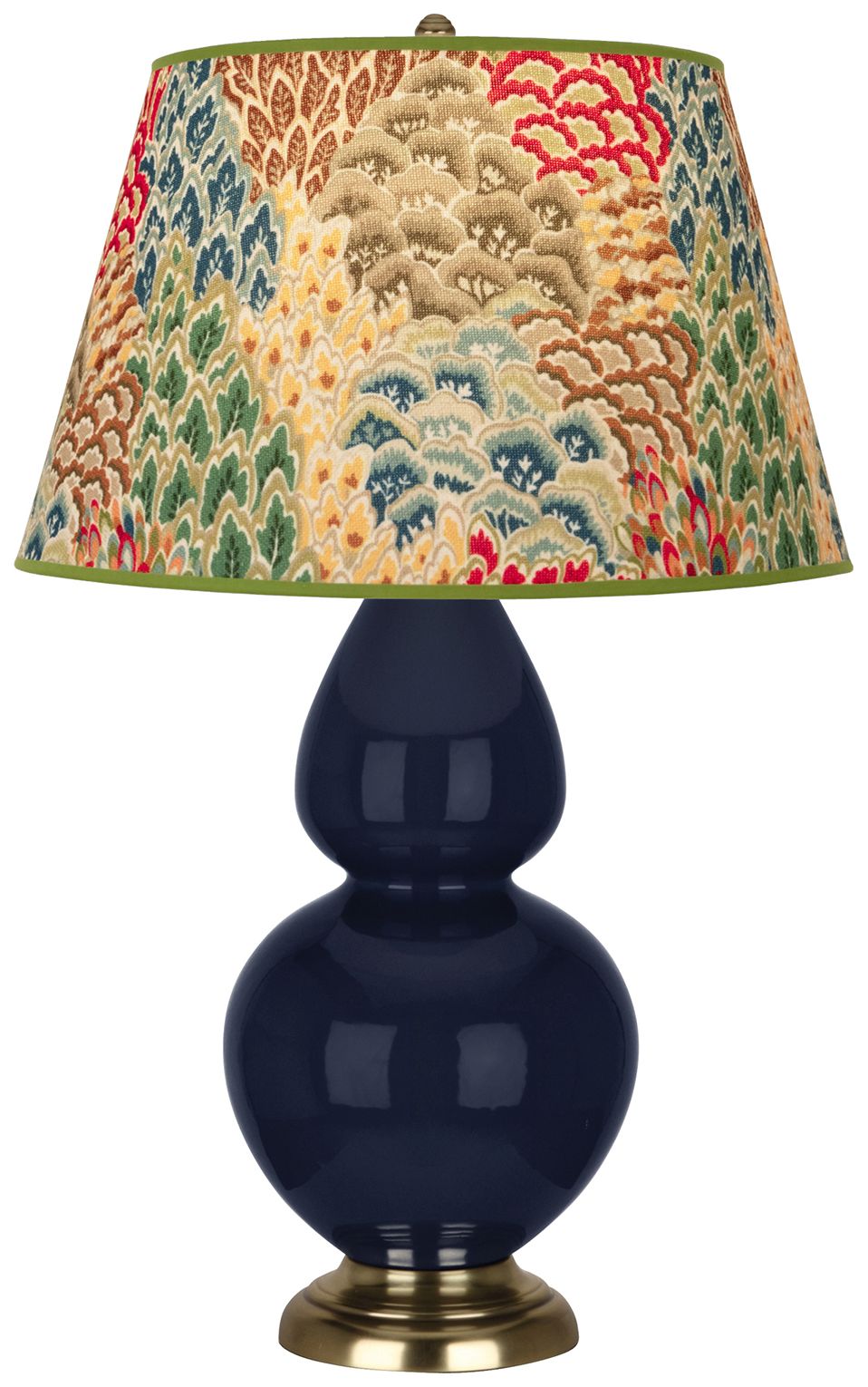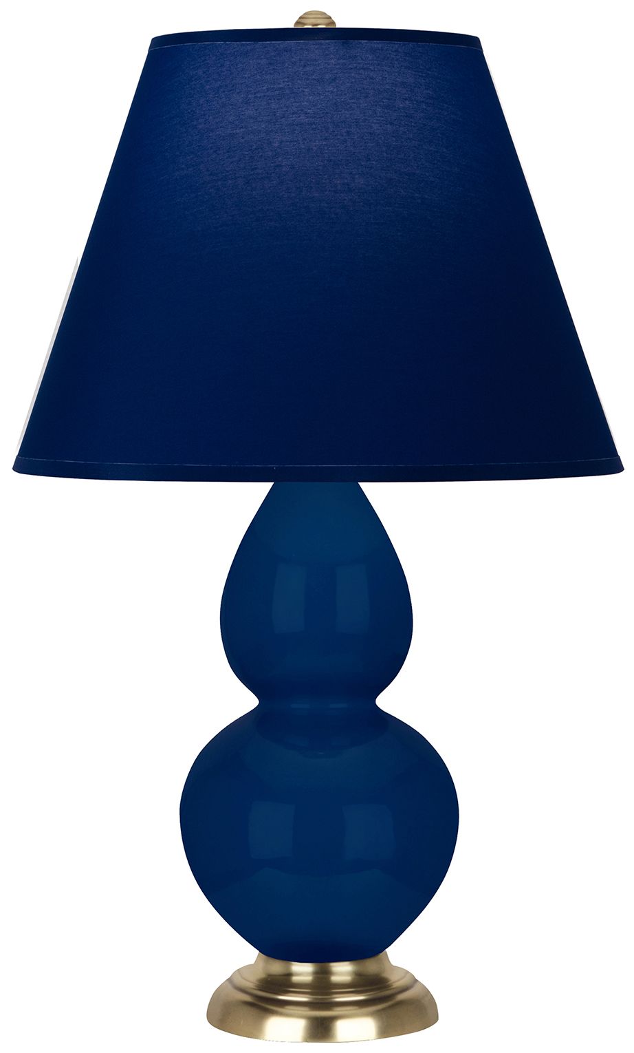 Double Gourd 22.75"H Cobalt And Brass Lamp w/ Navy And Gray Shade