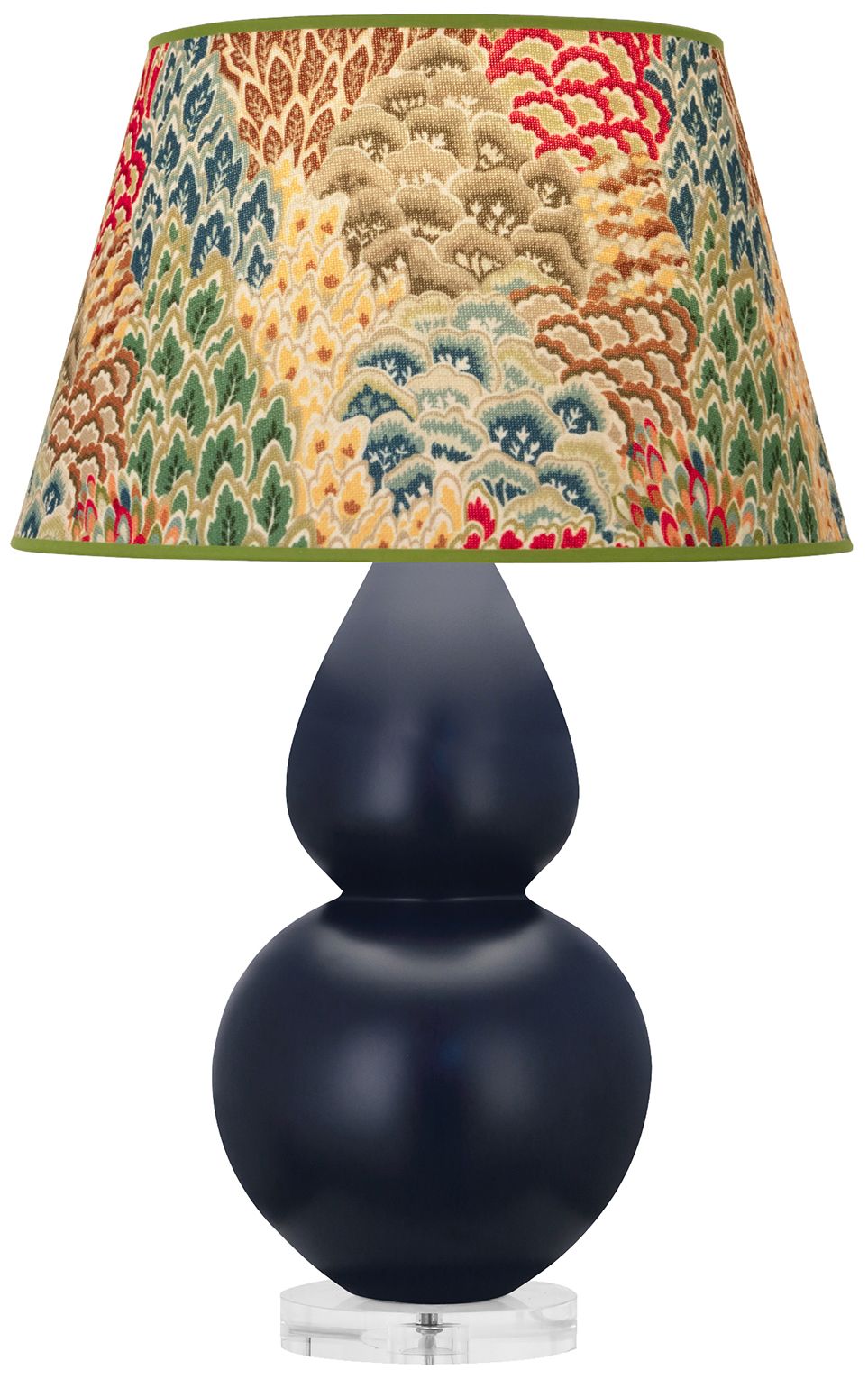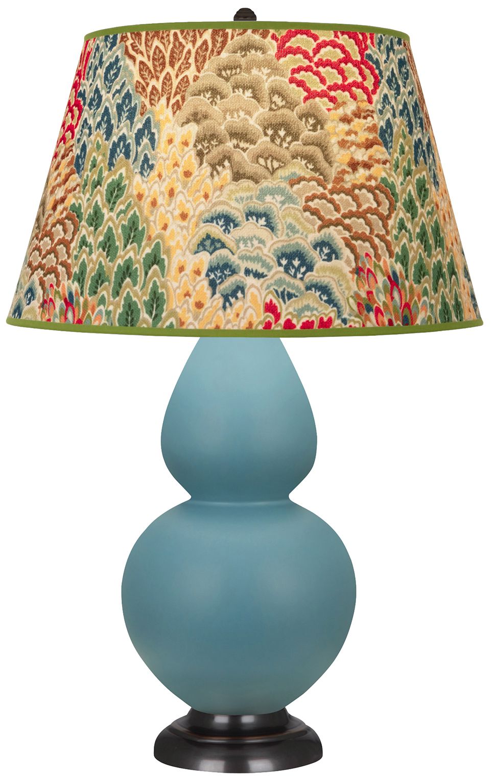 Double Gourd 30"H Matte Blue And Lucite Lamp w/ Fall Floral Shade