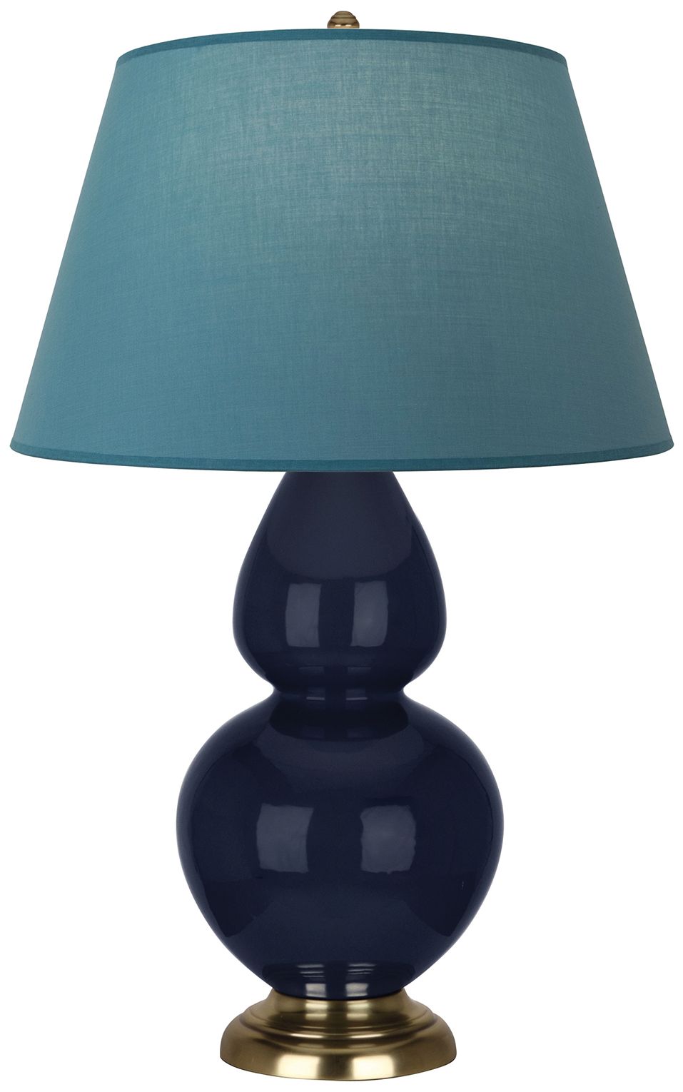 Double Gourd 23"H Celadon And Brass Lamp w/ Bright Blue And Gray Shade