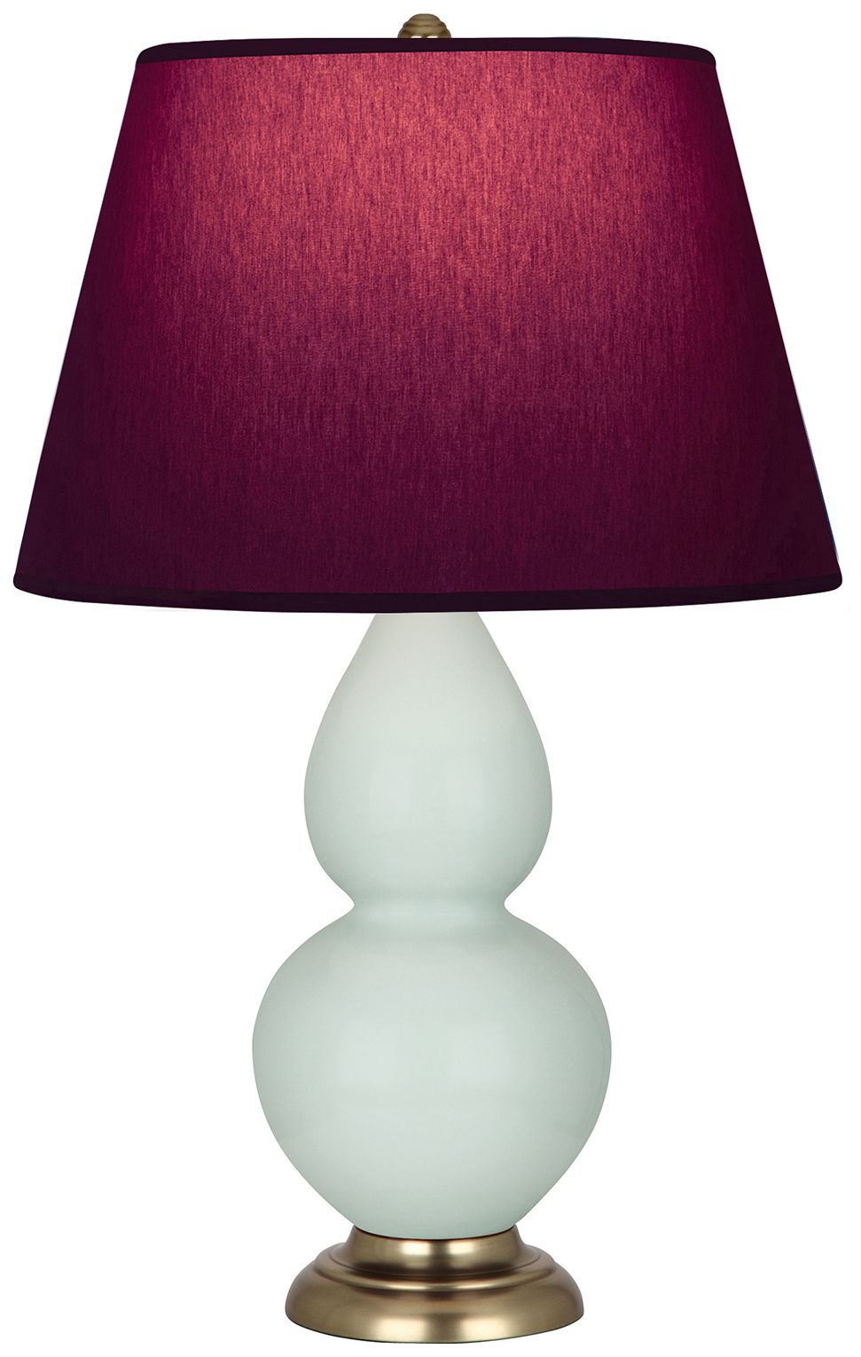 Double Gourd 31"H Celadon And Brass Lamp w/ Plum And Lavender Shade