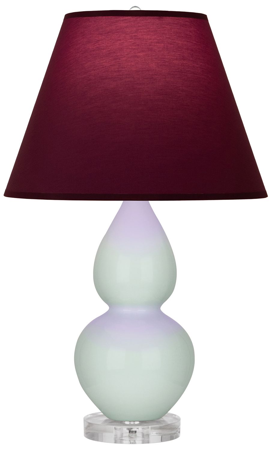 Double Gourd 22"H Celadon And Lucite Lamp w/ Plum And Lavender Shade