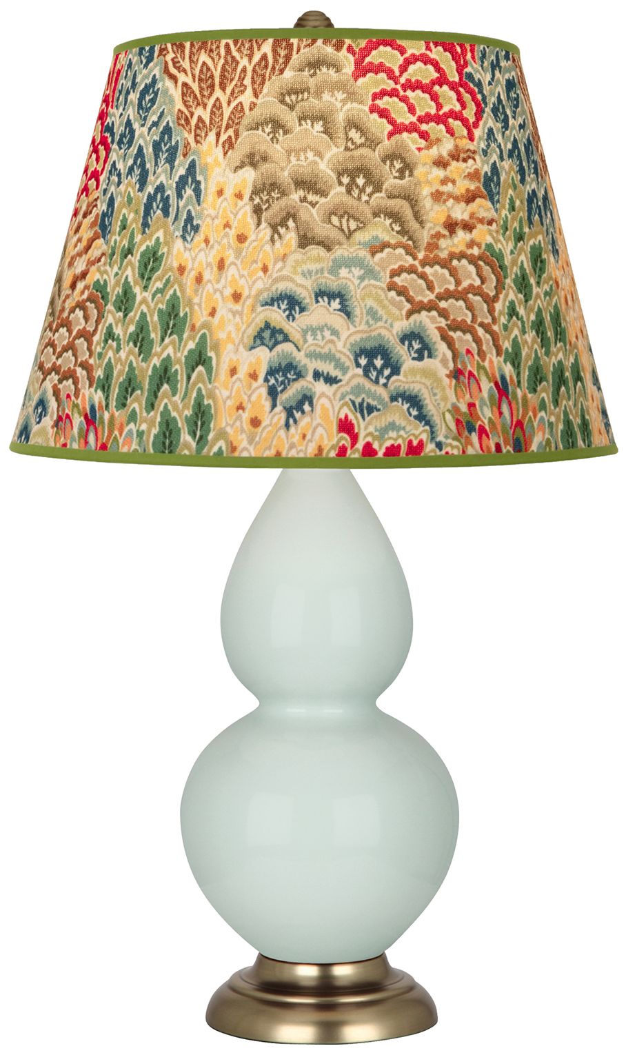 Double Gourd 31"H Celadon And Brass Table Lamp w/ Fall Floral Shade
