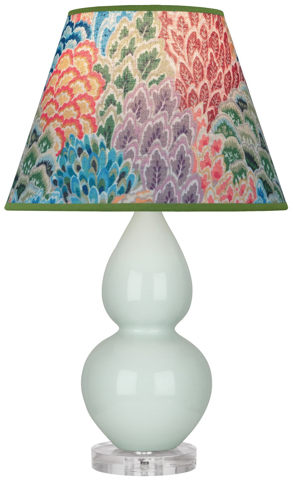 Double Gourd 30"H Matte Celadon And Lucite Lamp w/ Fall Floral Shade