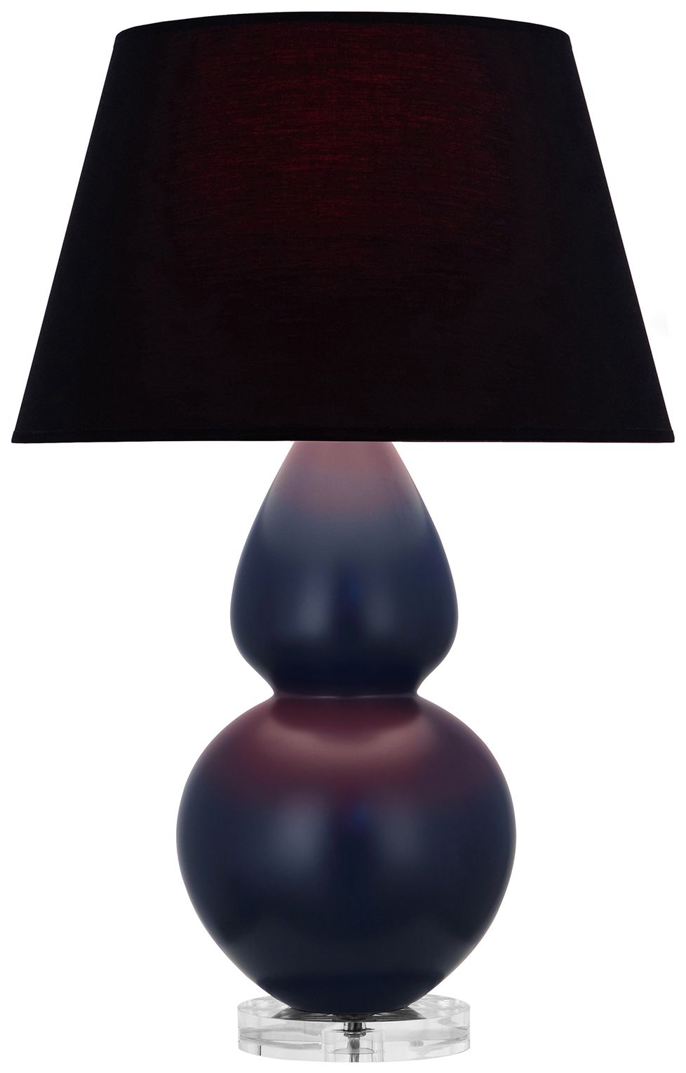 Double Gourd 30"H Matte Blue And Lucite Lamp w/ Ink And Rose Shade