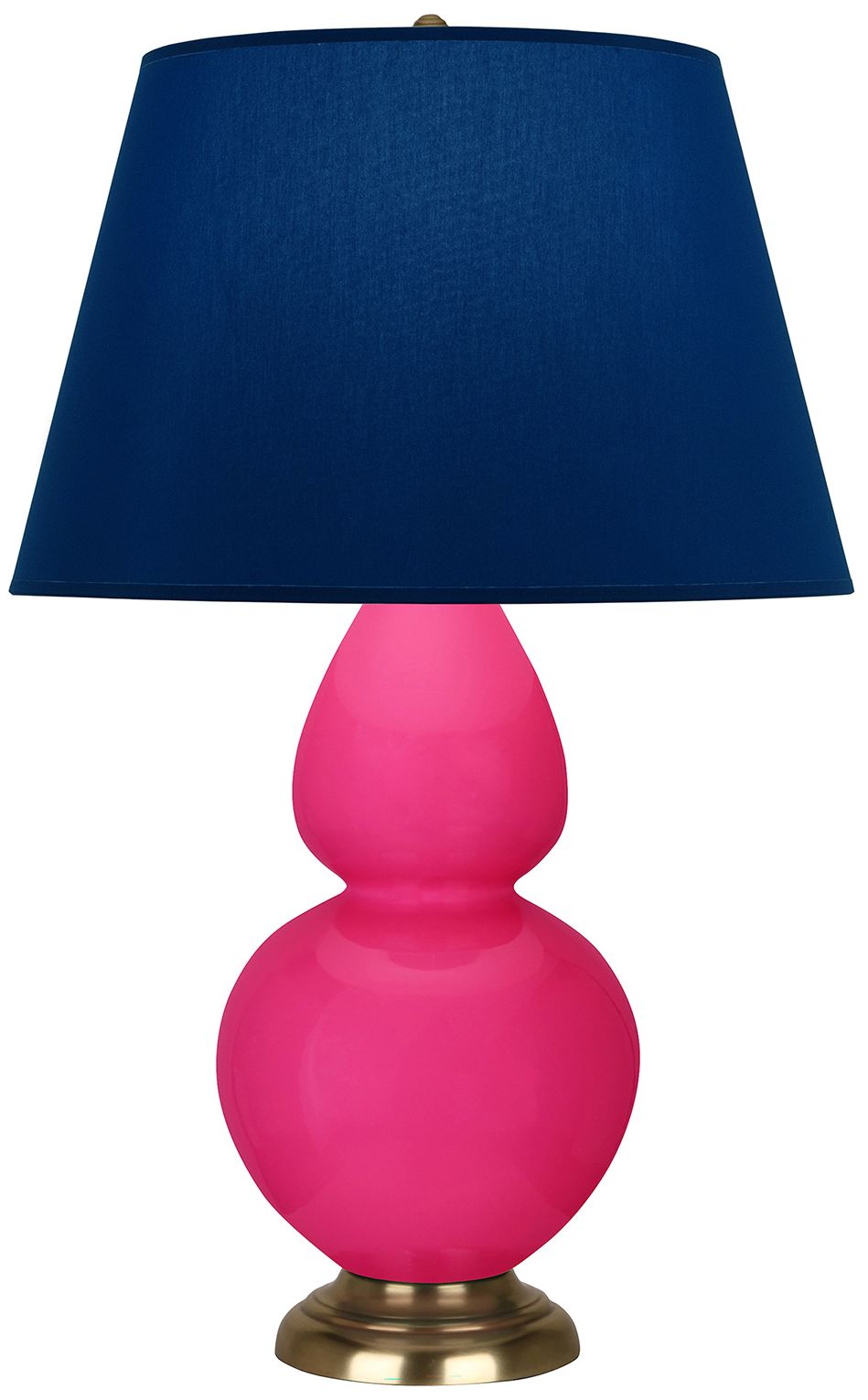 Double Gourd 31"H Razzle Rose And Brass Lamp w/ Navy And Gray Shade