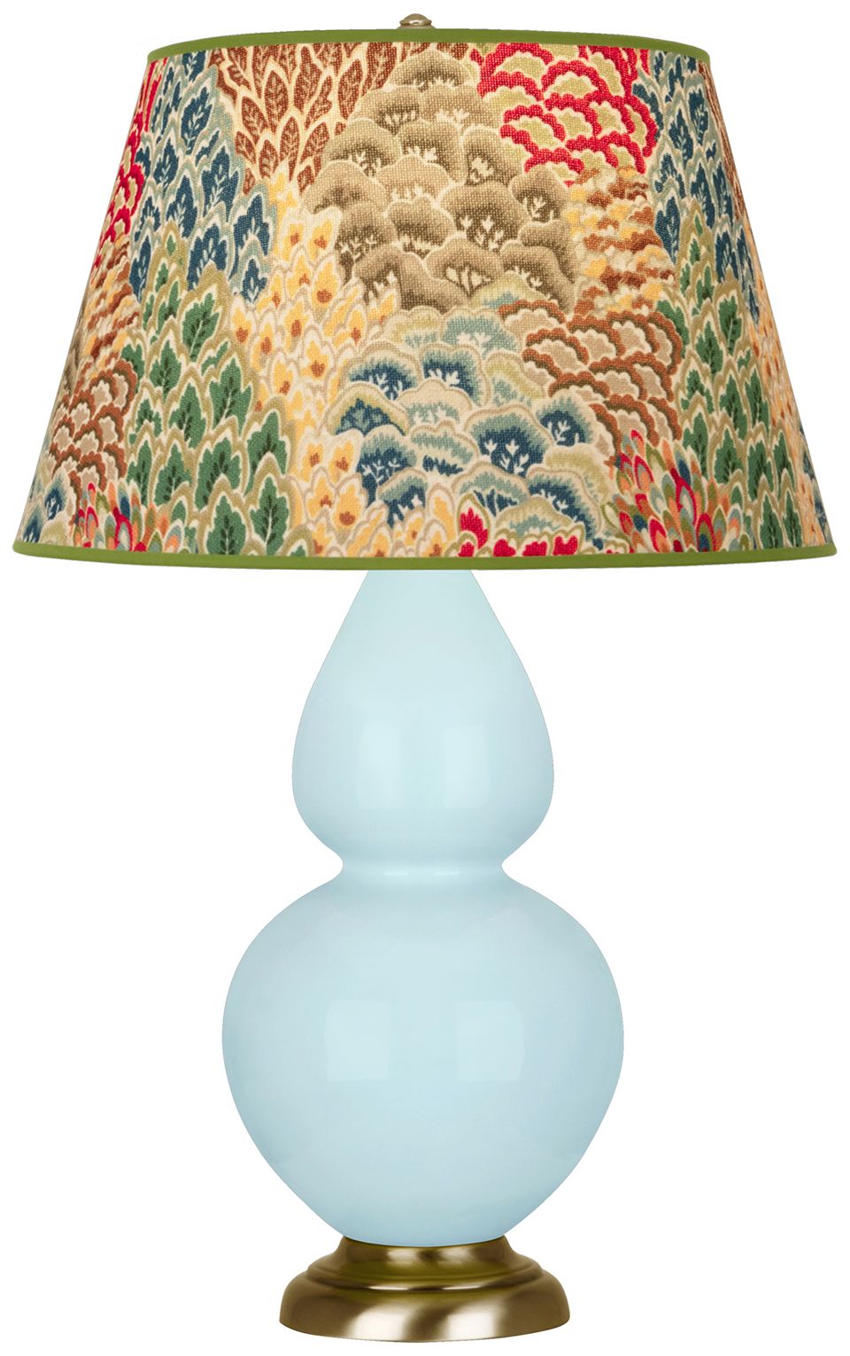 Double Gourd 31"H Baby Blue And Brass Table Lamp w/ Fall Floral Shade