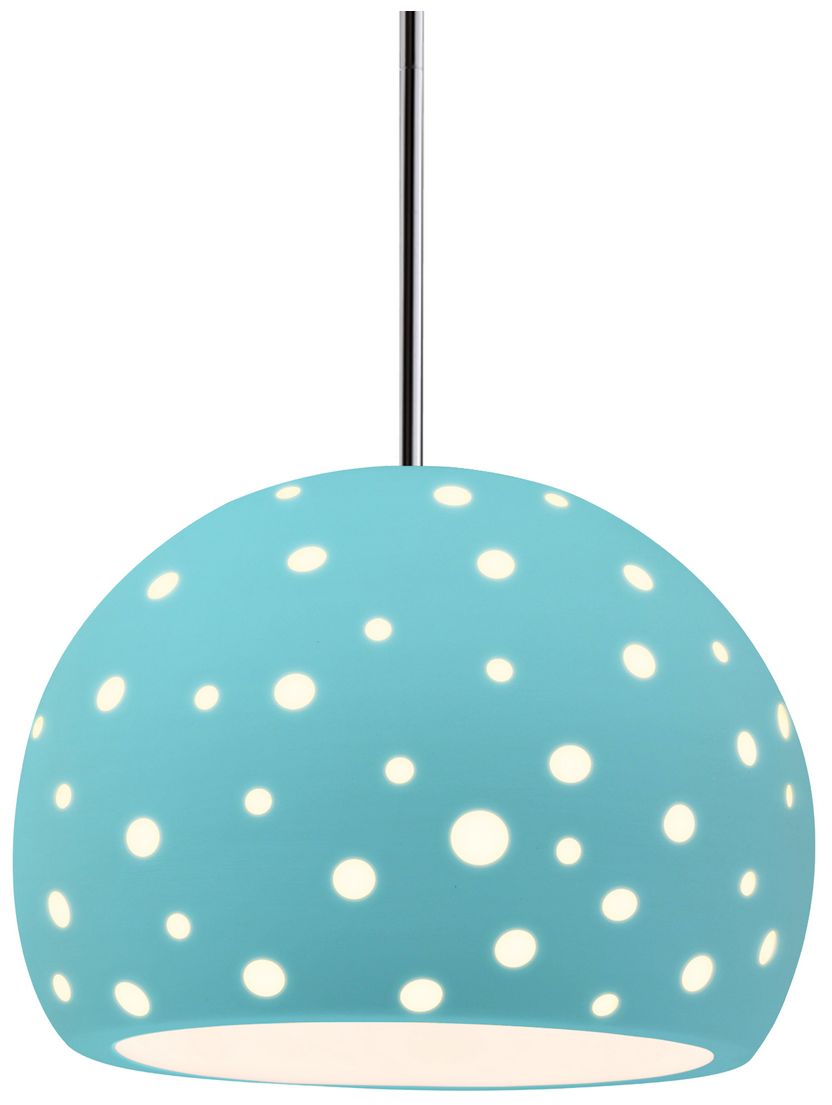 Perforated Globe 10"W Sky Blue, Polished Chrome LED Pendant - Rigid Stem
