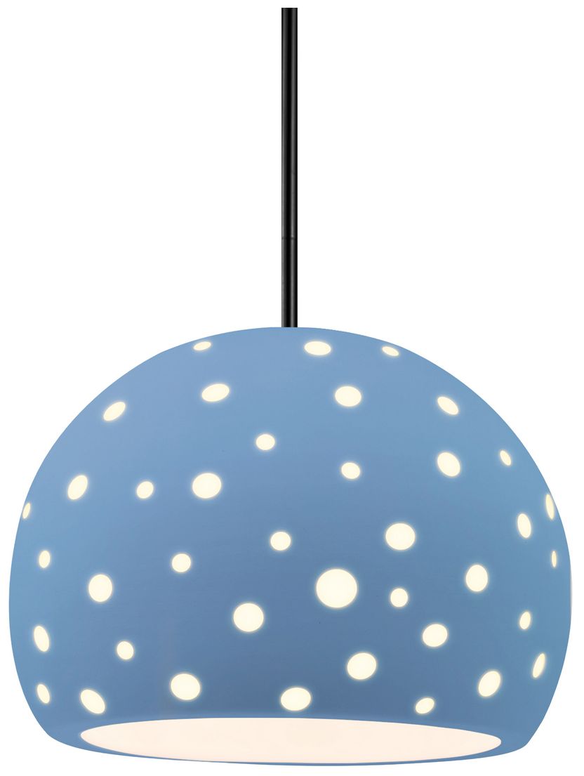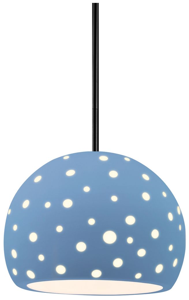 Perforated Dish 12" Wide Midnight Sky LED Pendant With Brass Black Cord