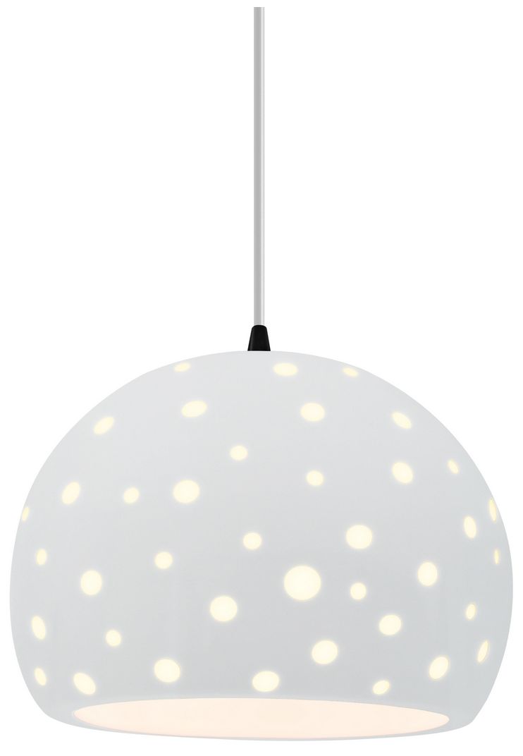 Perforated Globe 10"W Matte White, Polished Chrome Pendant - White Cord