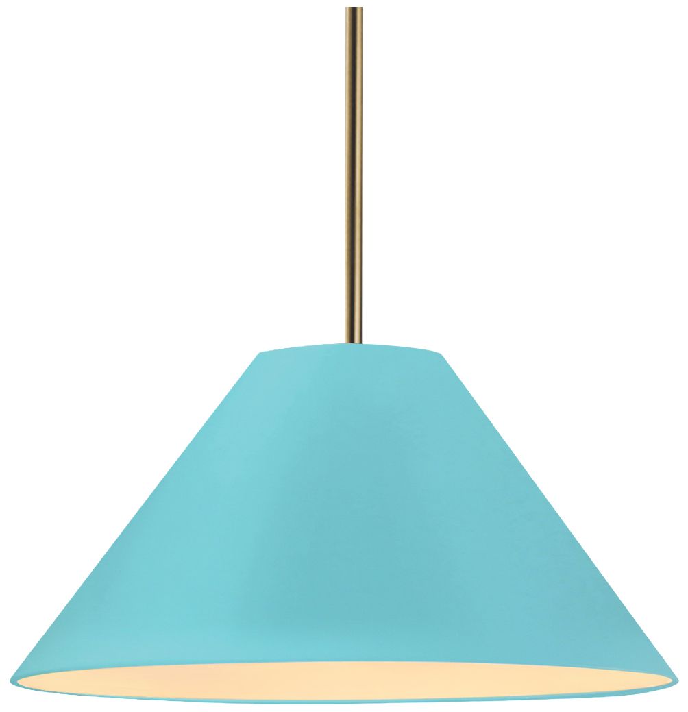 Radiance Crease 15.25"W Sky Blue, Antique Brass LED Pendant - White Cord