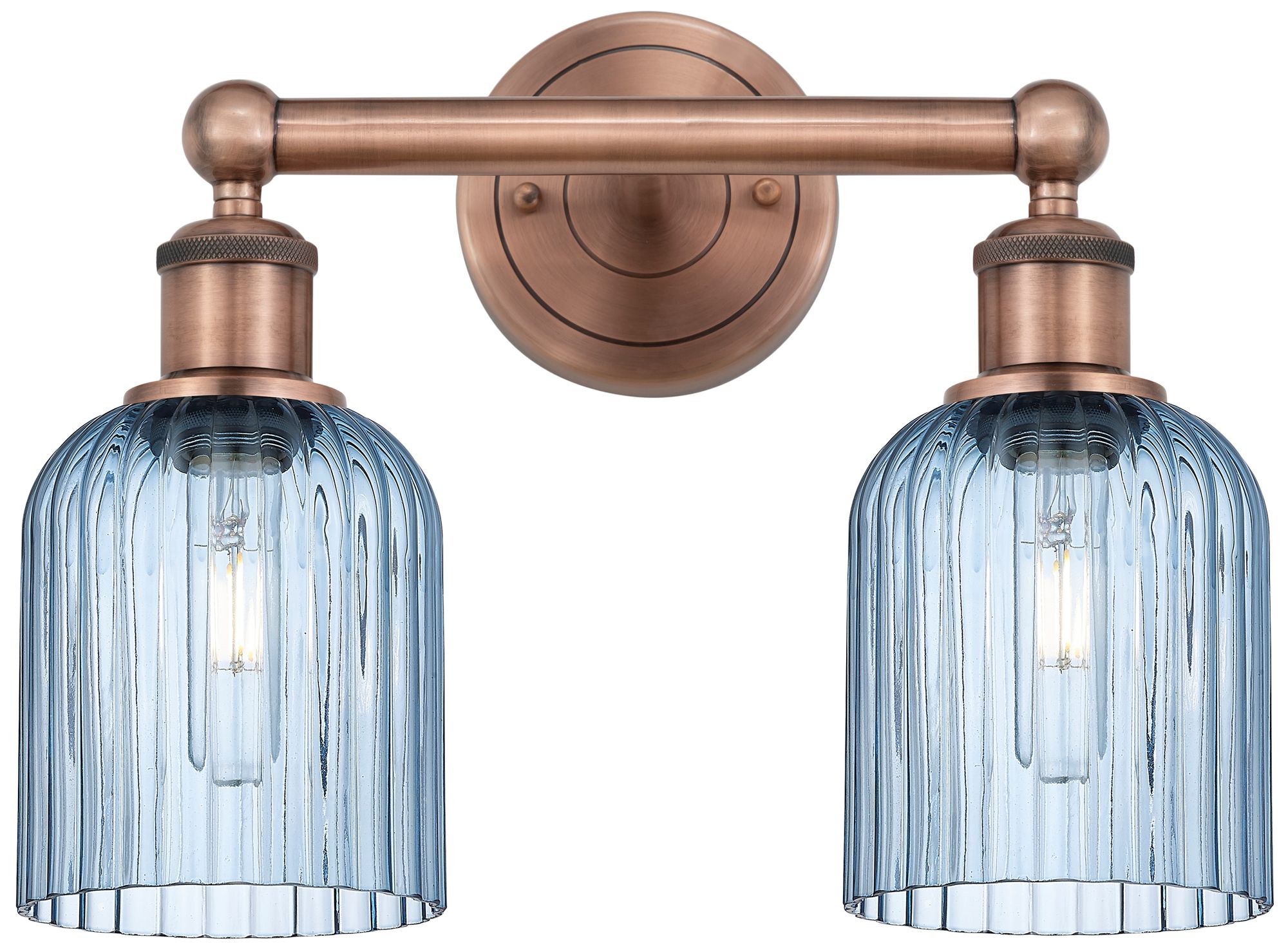 Edison Bridal Veil 2 Light 14" Bath Vanity Copper Princess Blue Shade