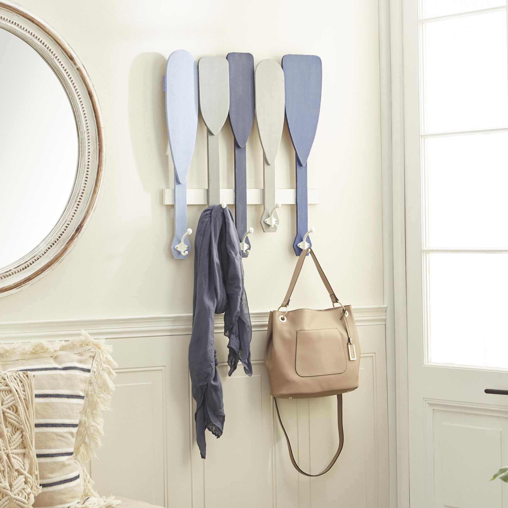 Blue Wood Coastal Wall Hook, 23" x 4" x 26"
