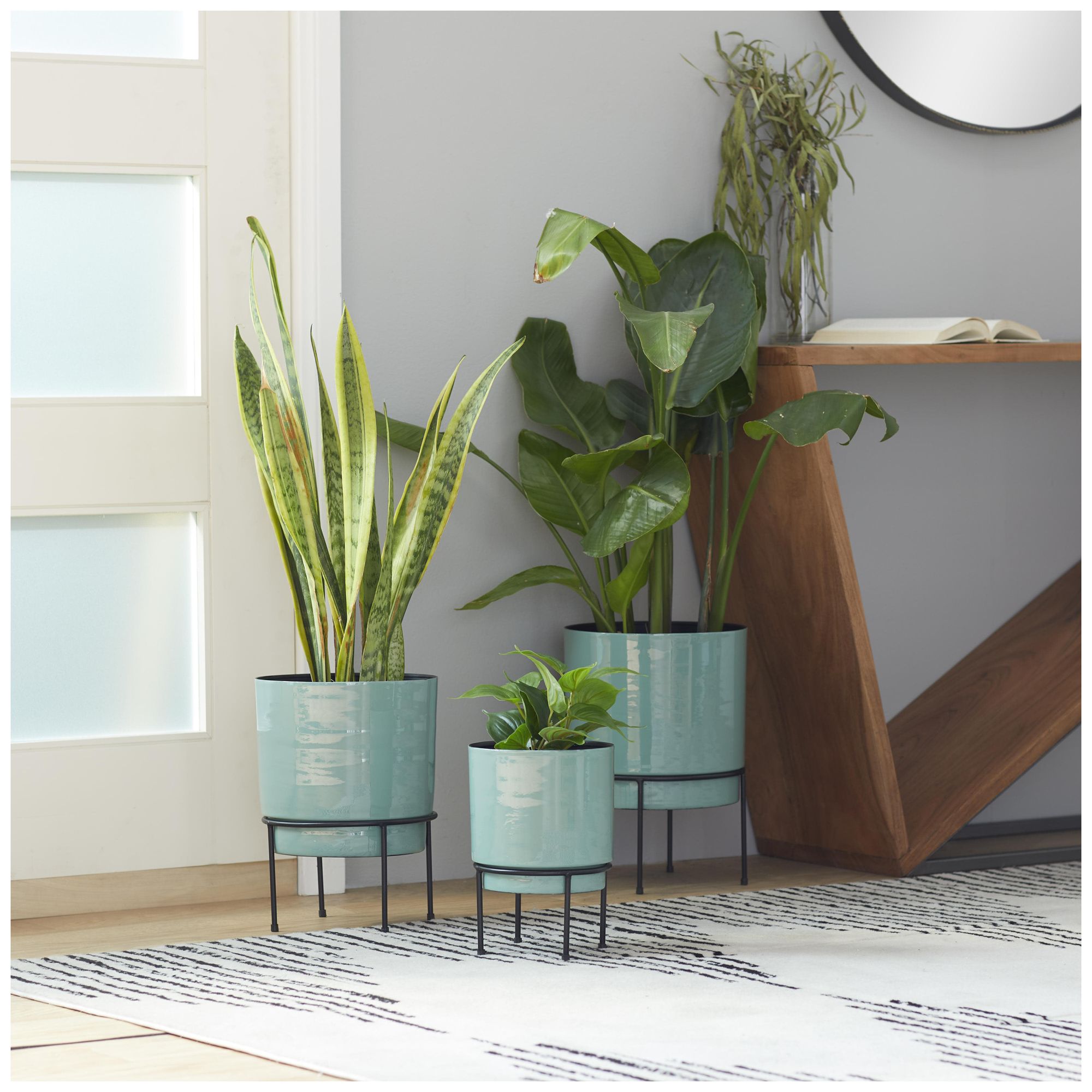 Teal Metal Contemporary Planter, S/3 10", 13", 14"H