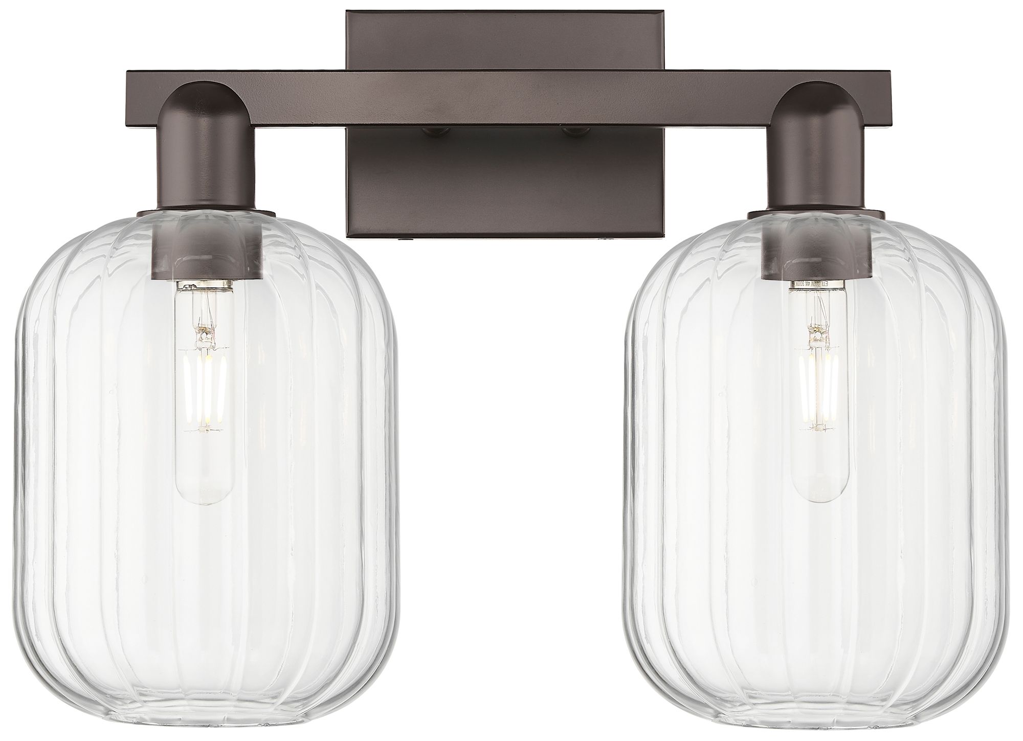 Preston 16"W 2 Light Oil Rubbed Bronze Bath Light With Clear Jar Shade