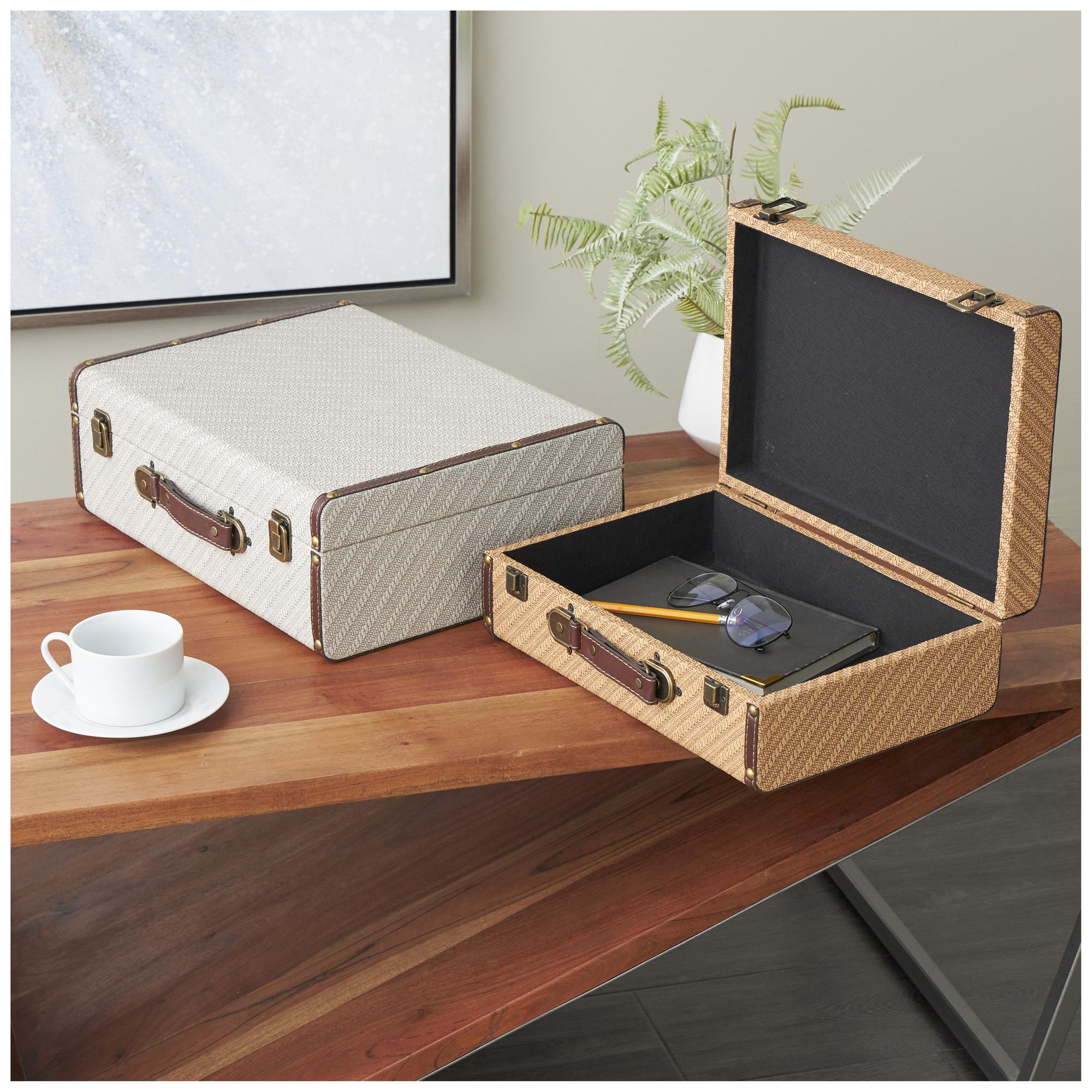 Brown Paper Handmade Zig Zag Storage Decorative Box, Set of 2 12", 8"W