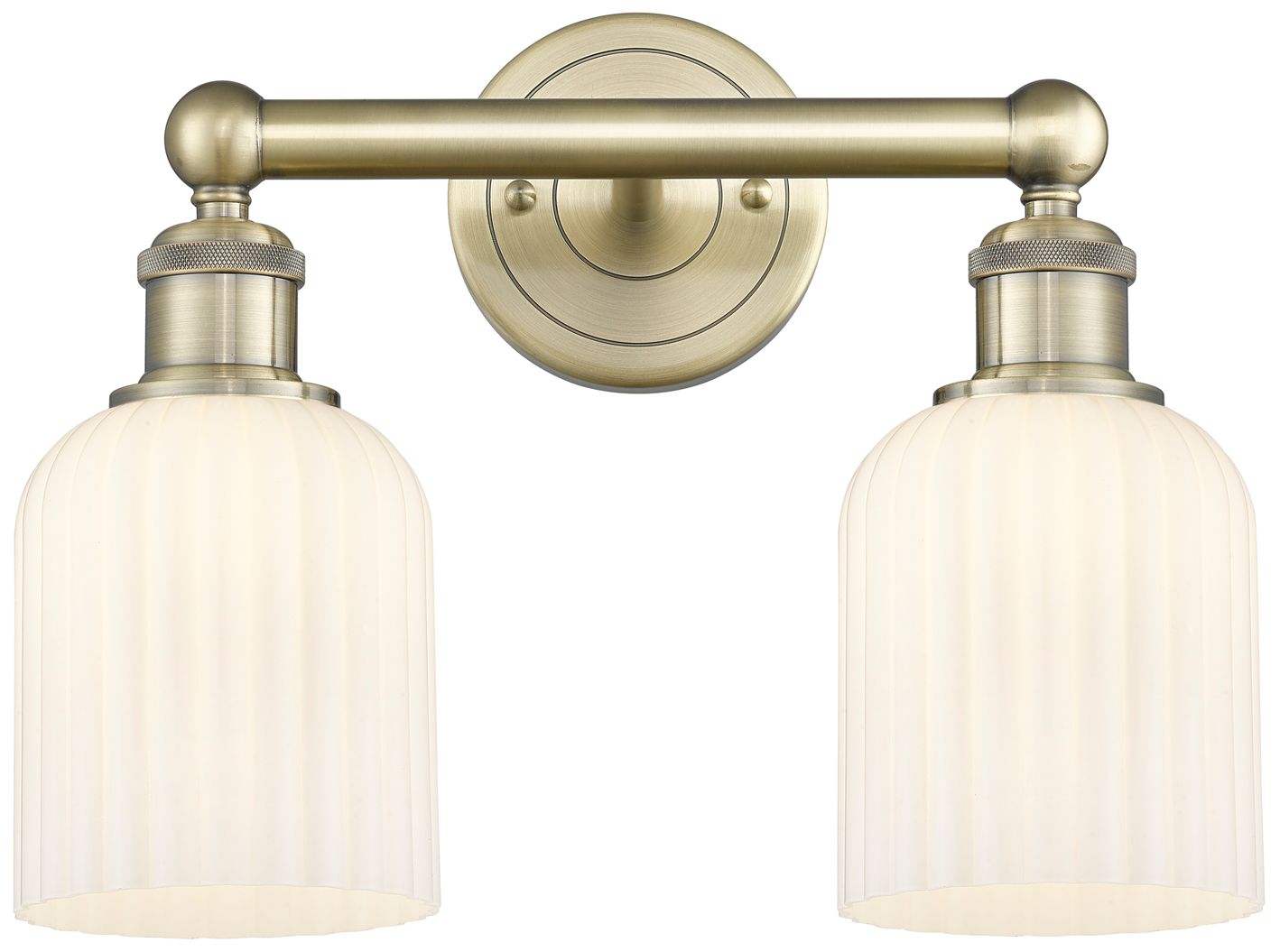 Edison Bridal Veil 2 Light 14" Bath Vanity Antique Brass Gloss White Shade