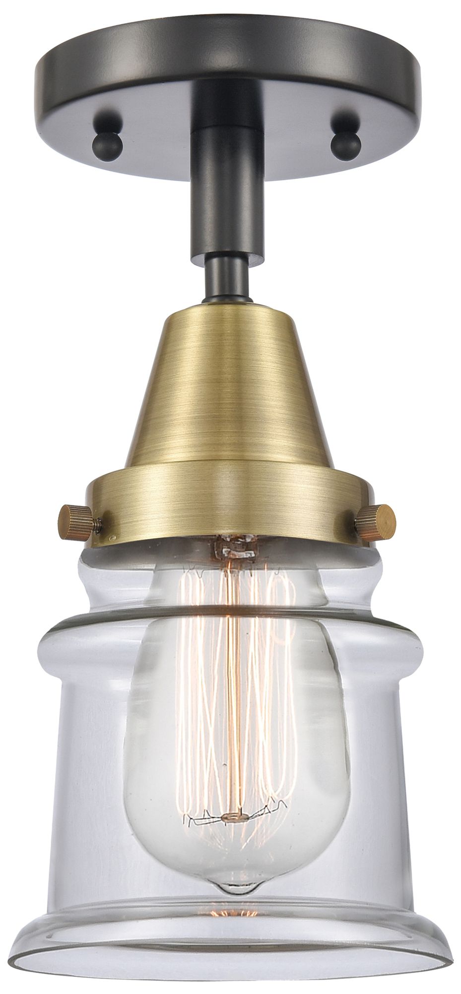 Caden Canton 5.25" Wide Black Antique Brass Flush Mount With Clear Sha