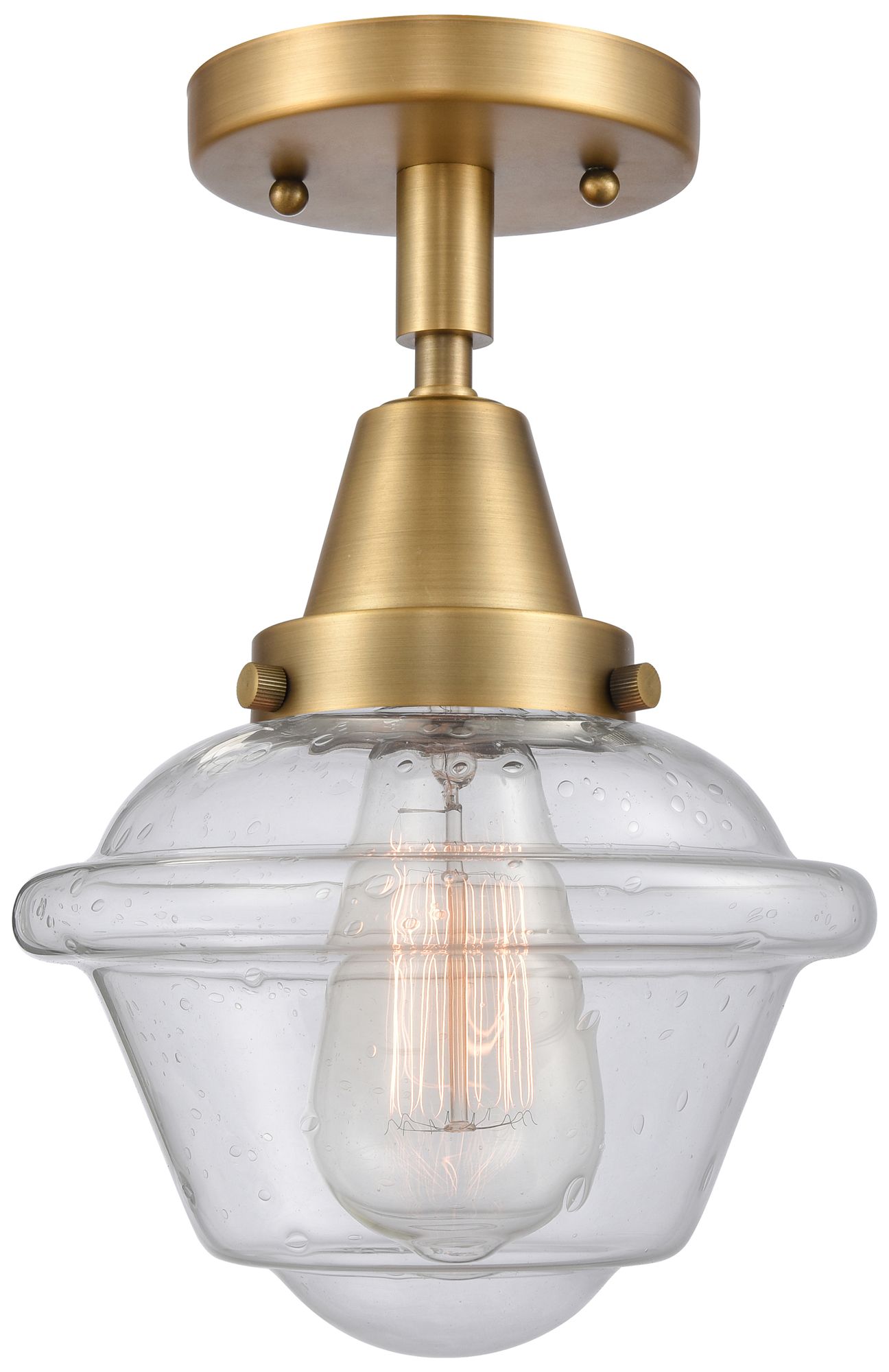 Caden Oxford 7.5" Wide Brushed Brass Flush Mount With Seedy Shade