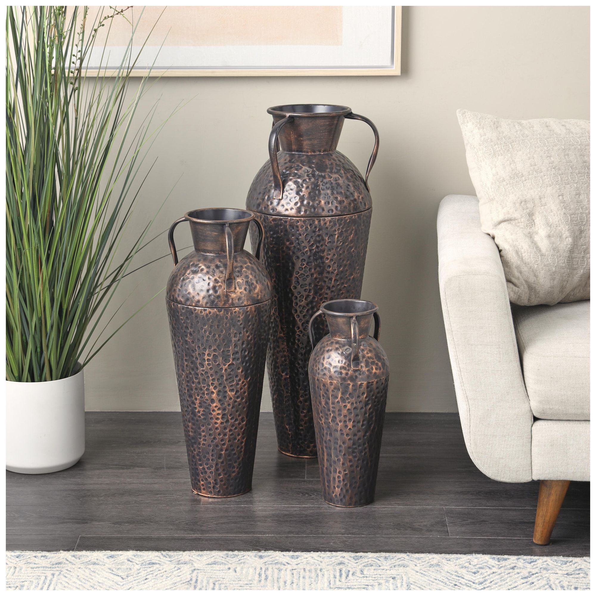 Copper Metal Industrial Vase, S/3 33", 25", 18"H