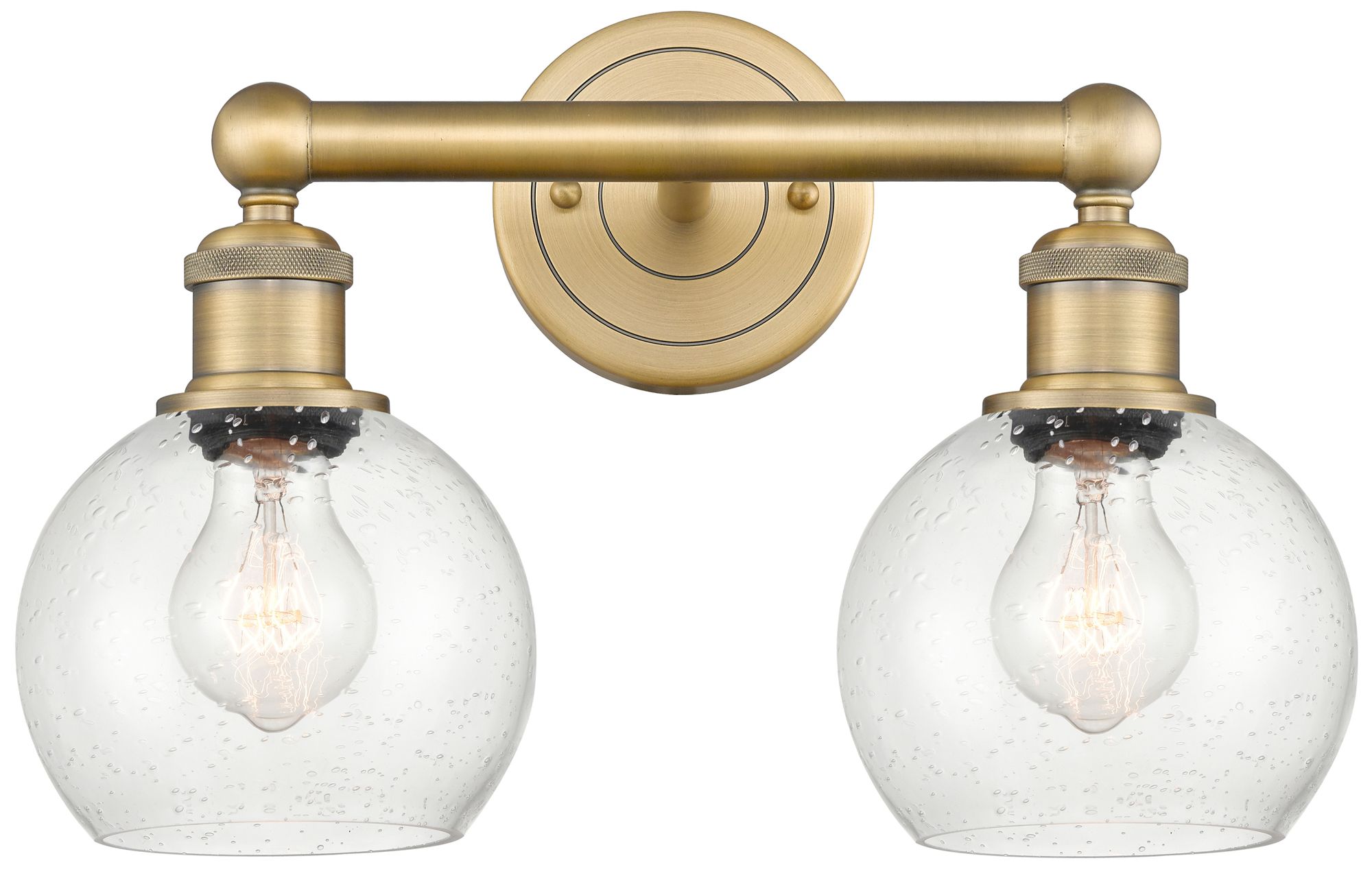 Athens 15" Wide 2 Light Brushed Brass Bath Vanity Light With Seedy Sha