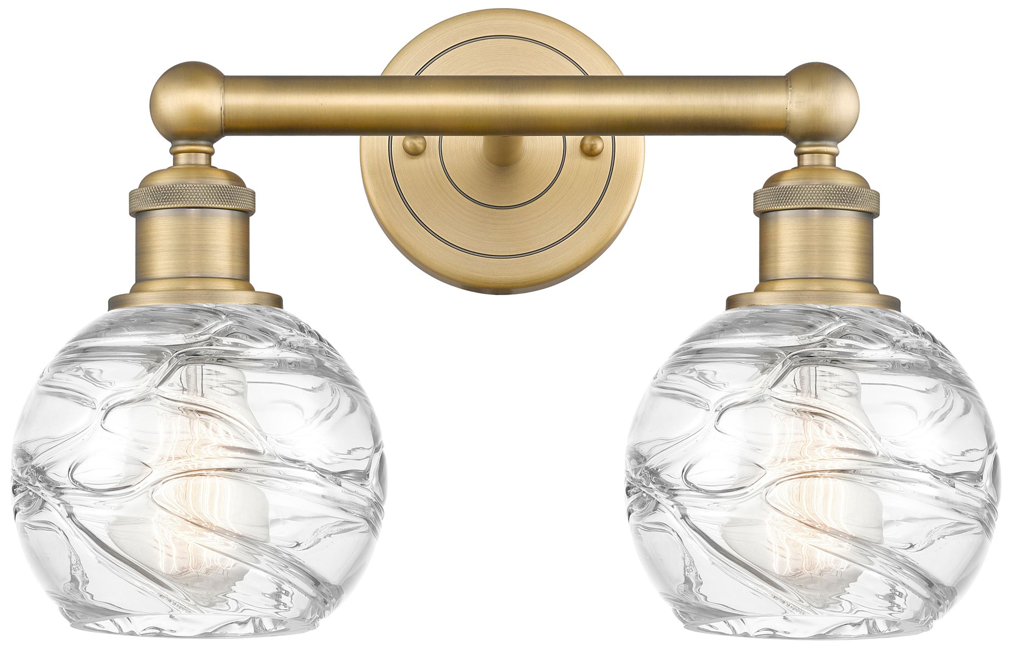 Athens 15"W 2 Light Brushed Brass Bath Light With Clear Deco Swirl Sha