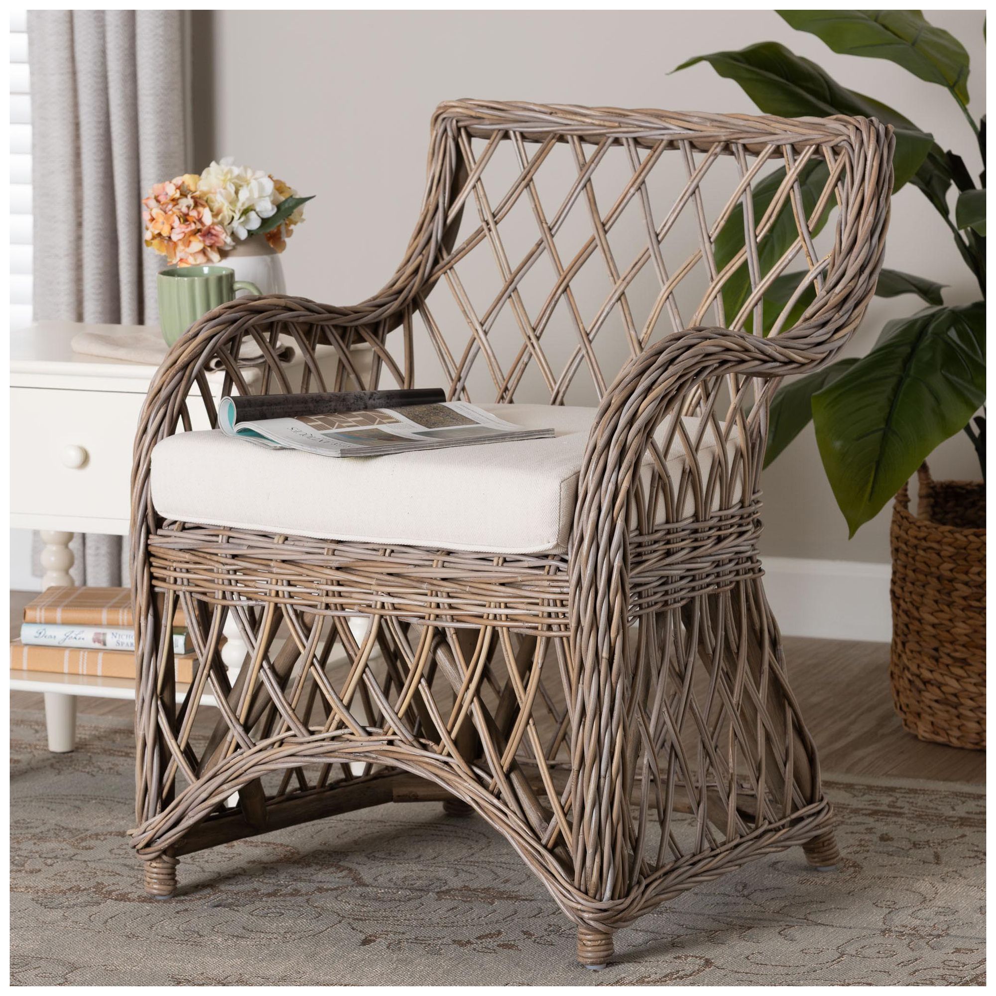 bali & pari Debra Natural Rattan Armchair with Removable Cushion