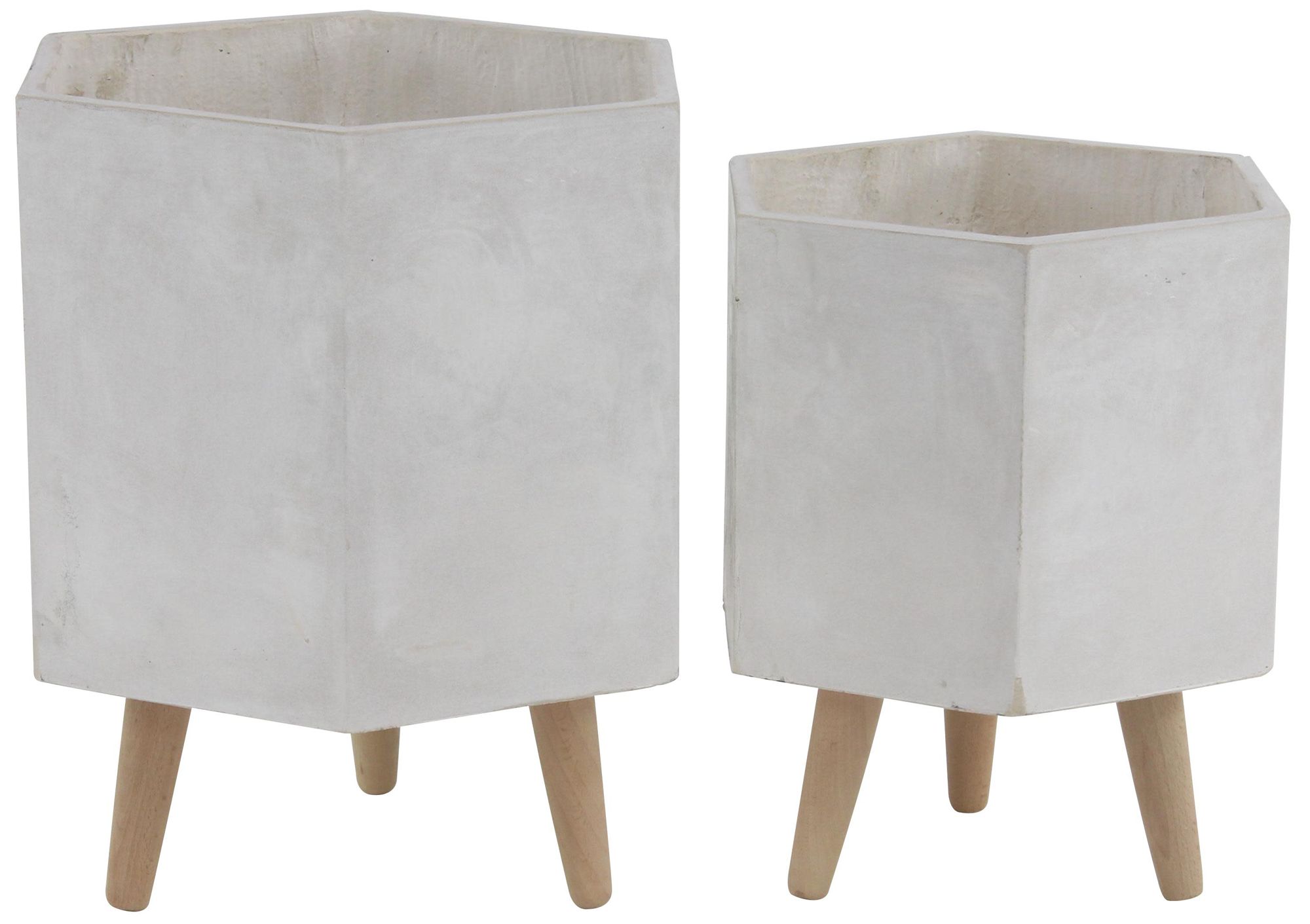 Light Gray Magnesium Oxide Contemporary Planter, S/2 15", 17"H