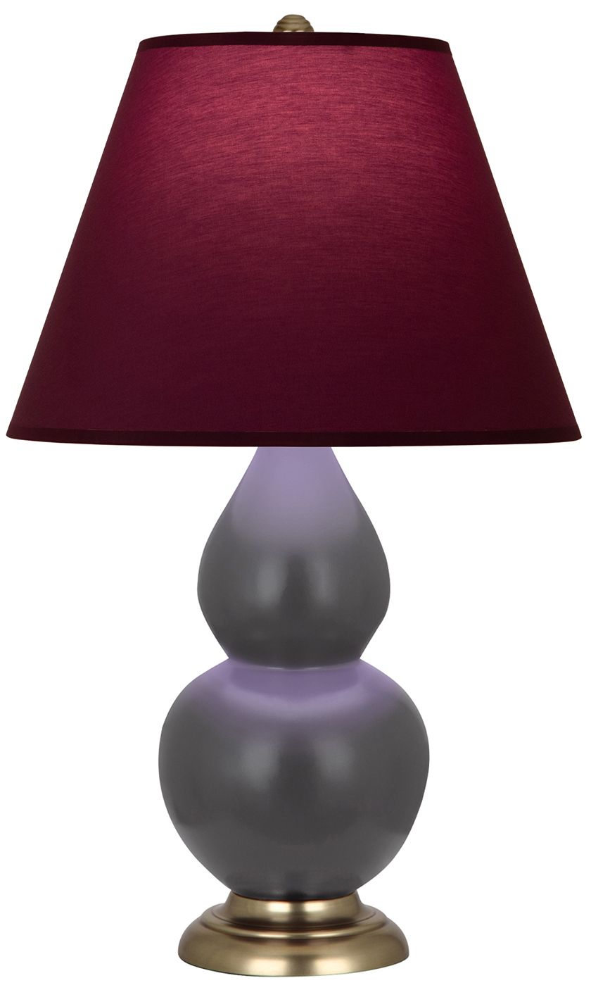 Double Gourd 23"H Matte Ash And Brass Lamp w/ Plum And Lavender Shade
