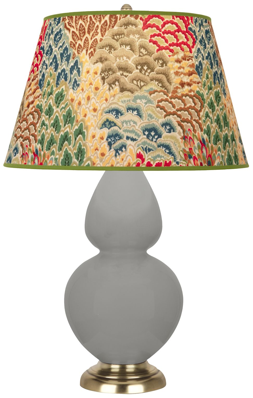 Double Gourd 31"H Matte Taupe And Brass Lamp w/ Fall Floral Shade