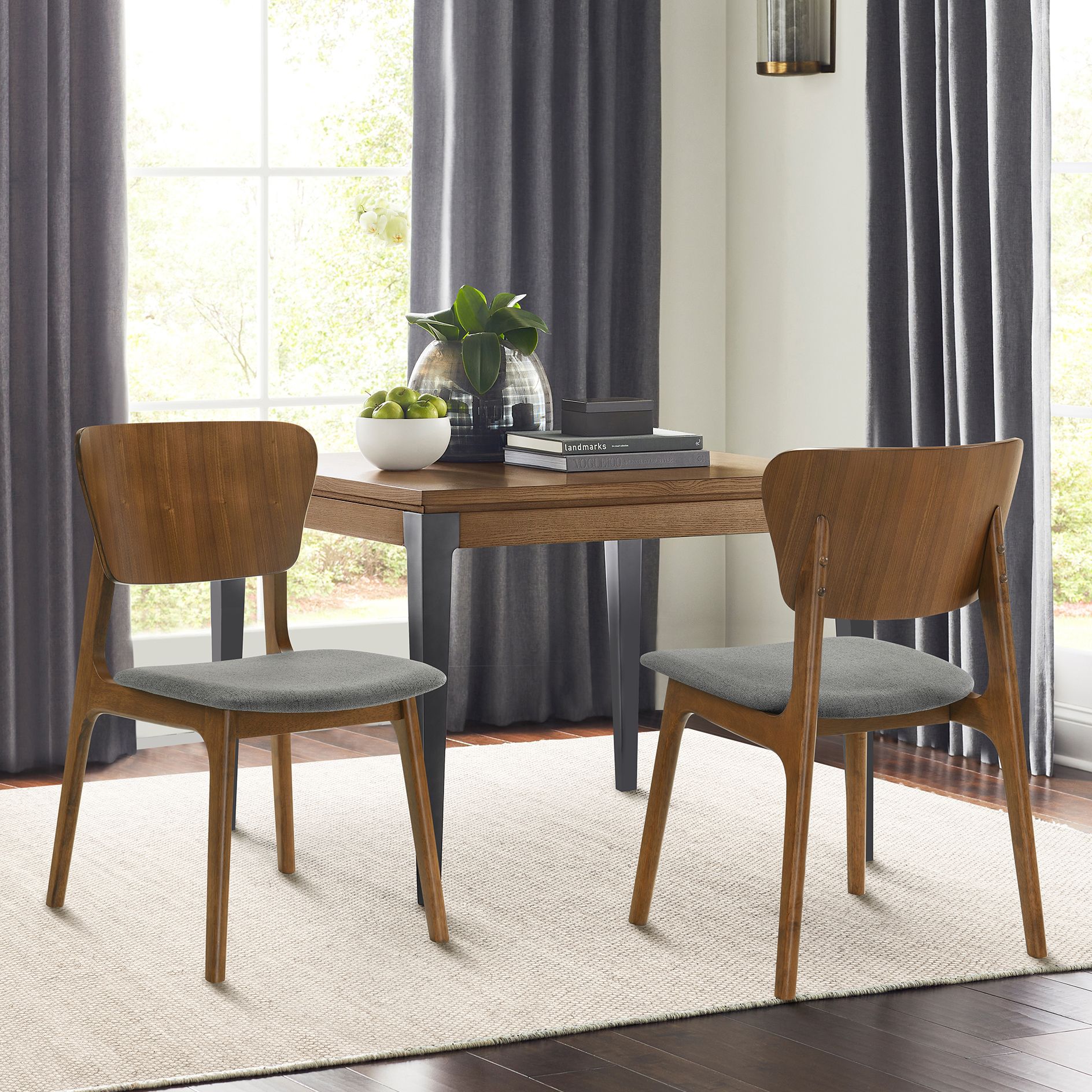 Kalia Set of 2 Dining Chairs in Wood, Walnut Finish and Charcoal Fabric