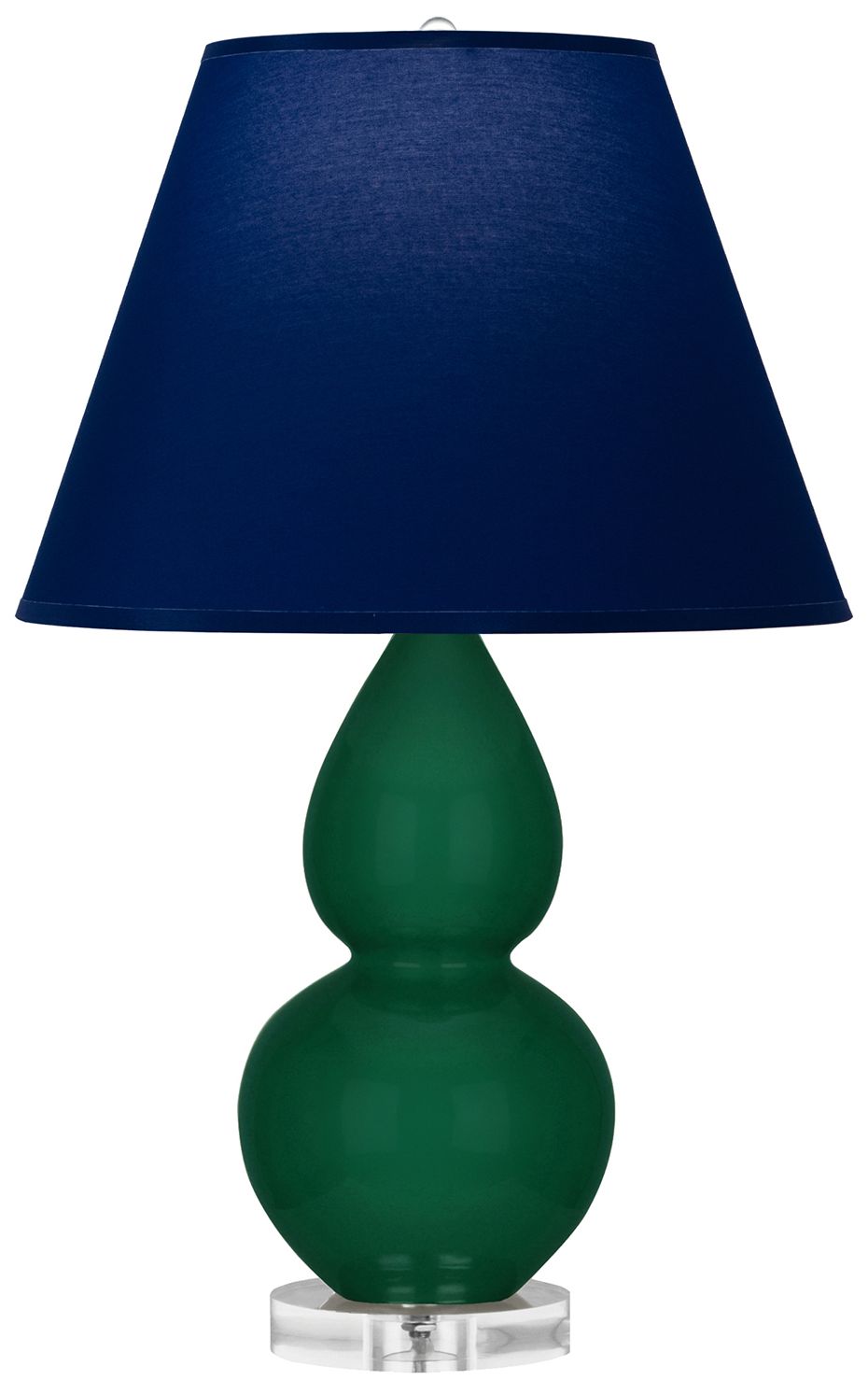 Double Gourd 22"H Celadon And Lucite Lamp w/ Navy And Gray Shade