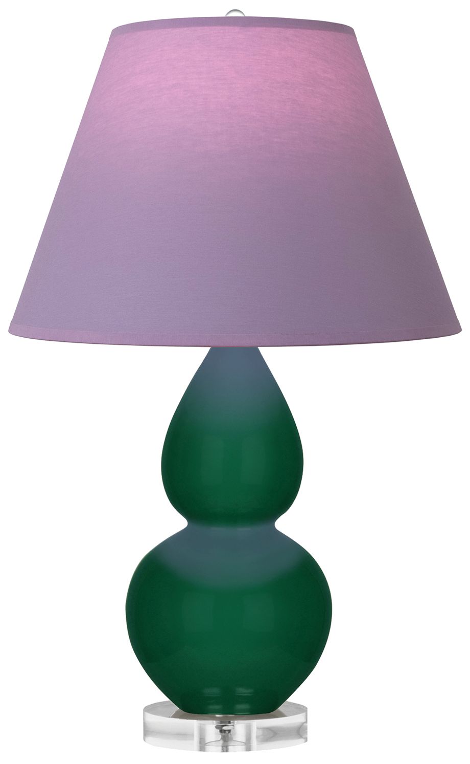 Double Gourd 30"H Celadon And Lucite Lamp w/ Plum And Lavender Shade