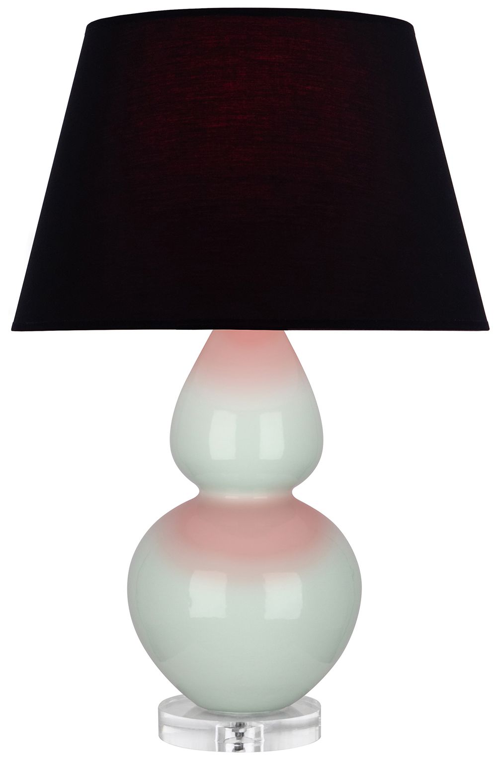 Double Gourd 22"H Matte Celadon And Lucite Lamp w/ Rose And Ink Shade