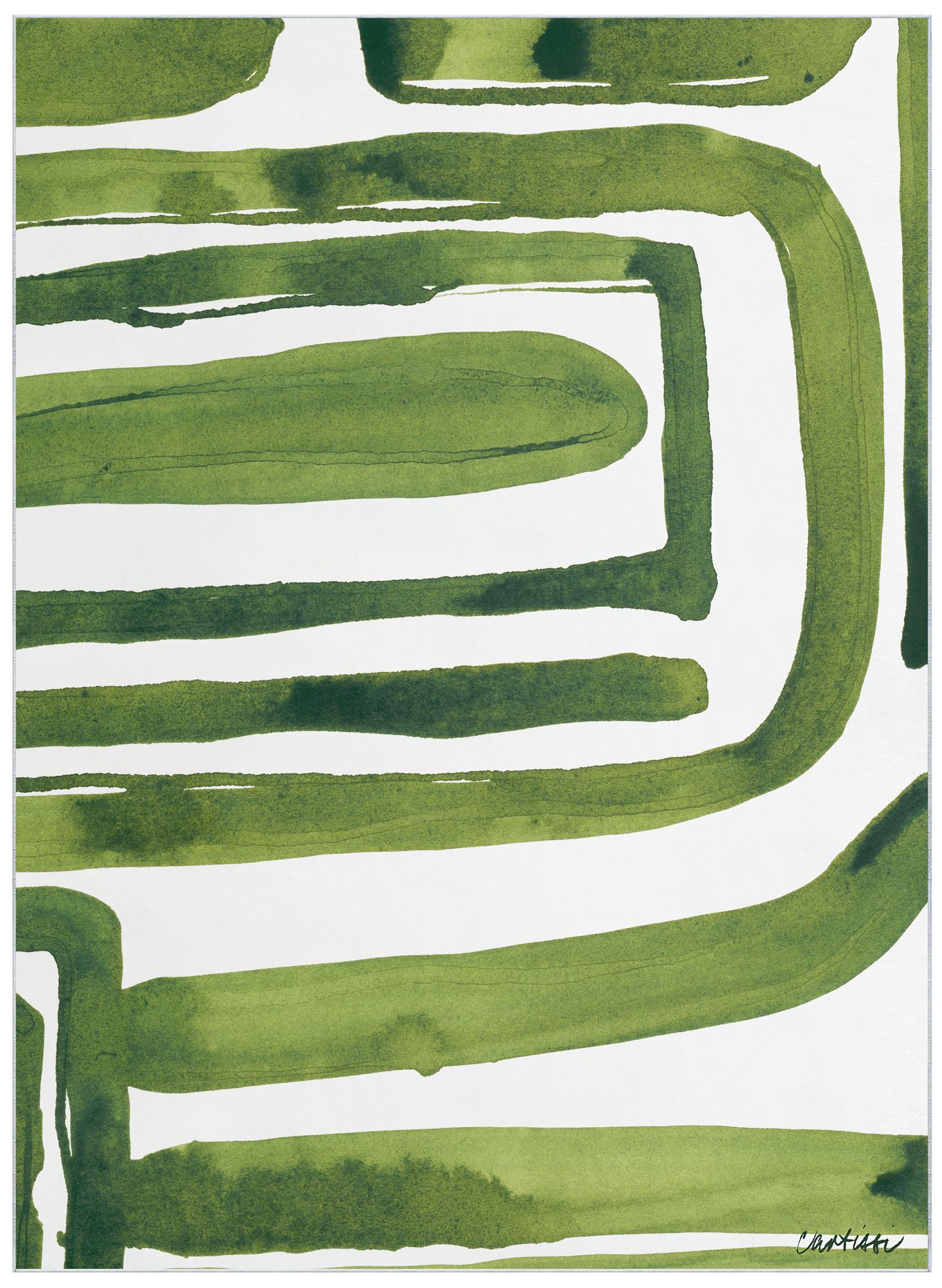 Green Labyrinth II Washable Abstract Art Area Rug size 5'x8'