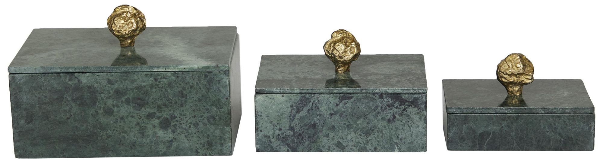 Green Marble Modern Box, S/3 9", 7", 6"W