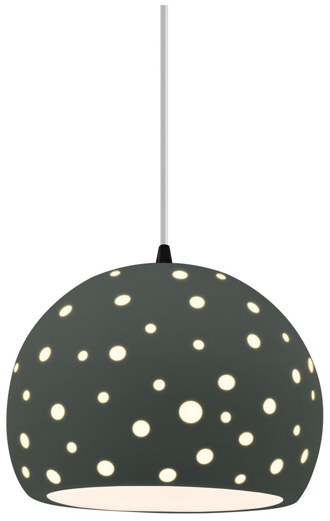 Perforated Globe 12.25"W Pewter Green, Matte Black Pendant - Rigid Stem