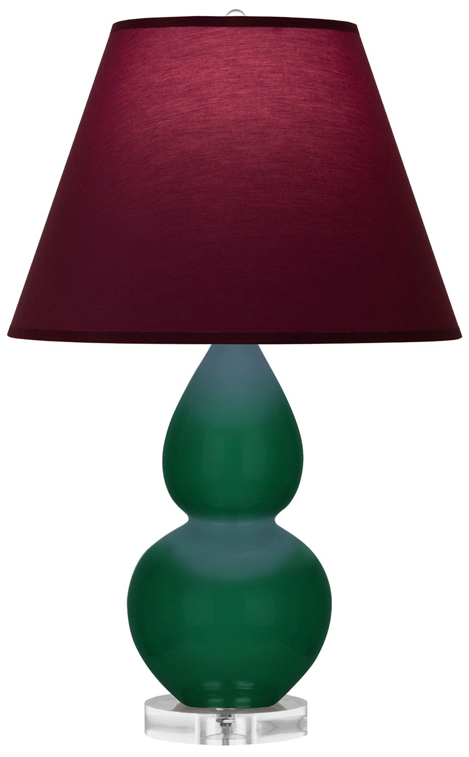 Small Double Gourd 22"H Mint Glazed Lucite Lamp w/ Black Red Shade