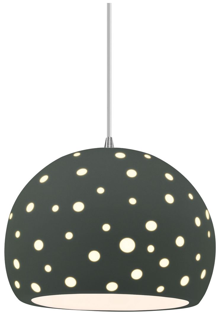 Perforated Globe 7"W Matte Green, Matte Black Pendant - White Cord