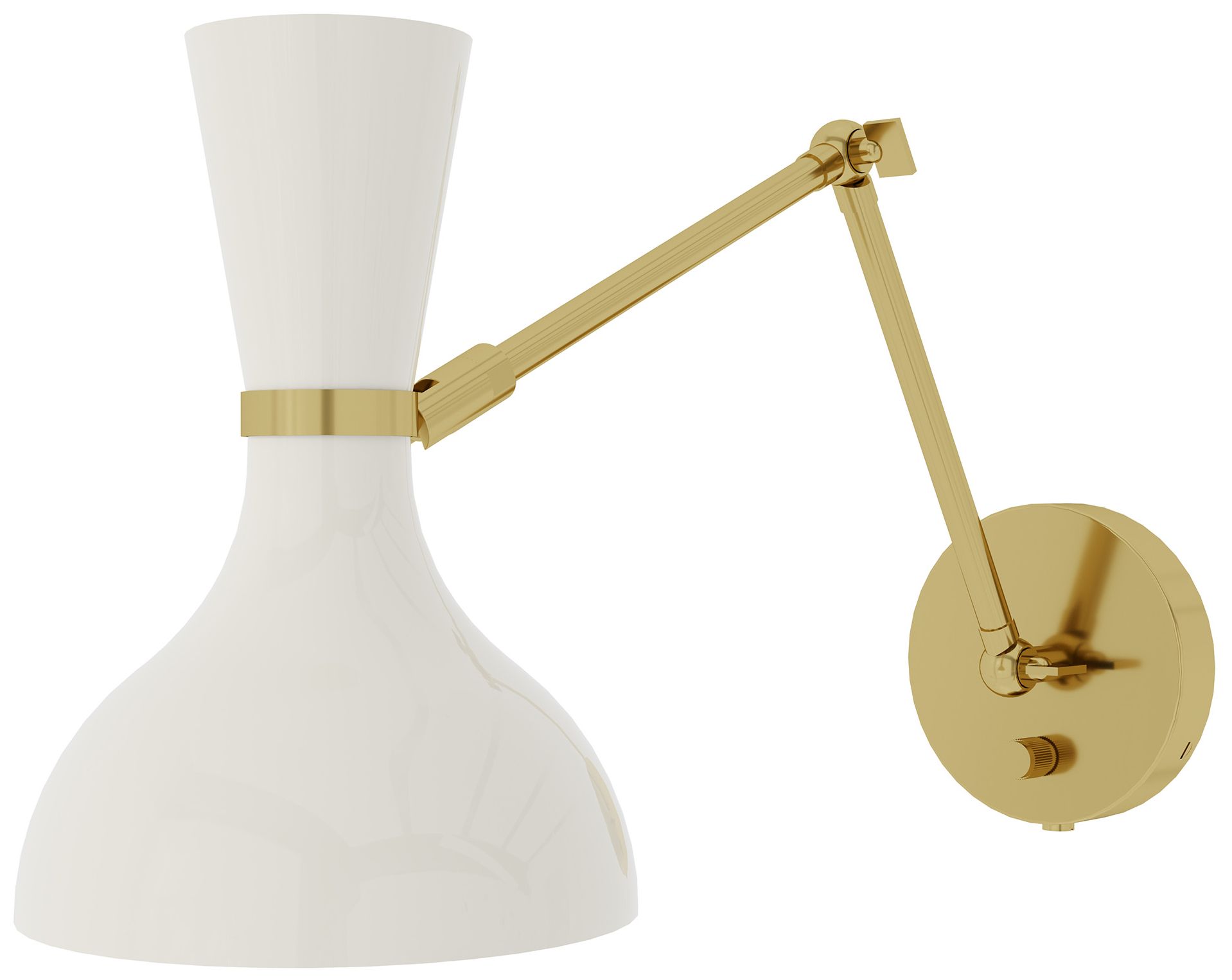 Clare 10.13"H Brass Adjustable Armed Wall Sconce w/ Obsidian/Bone Shade