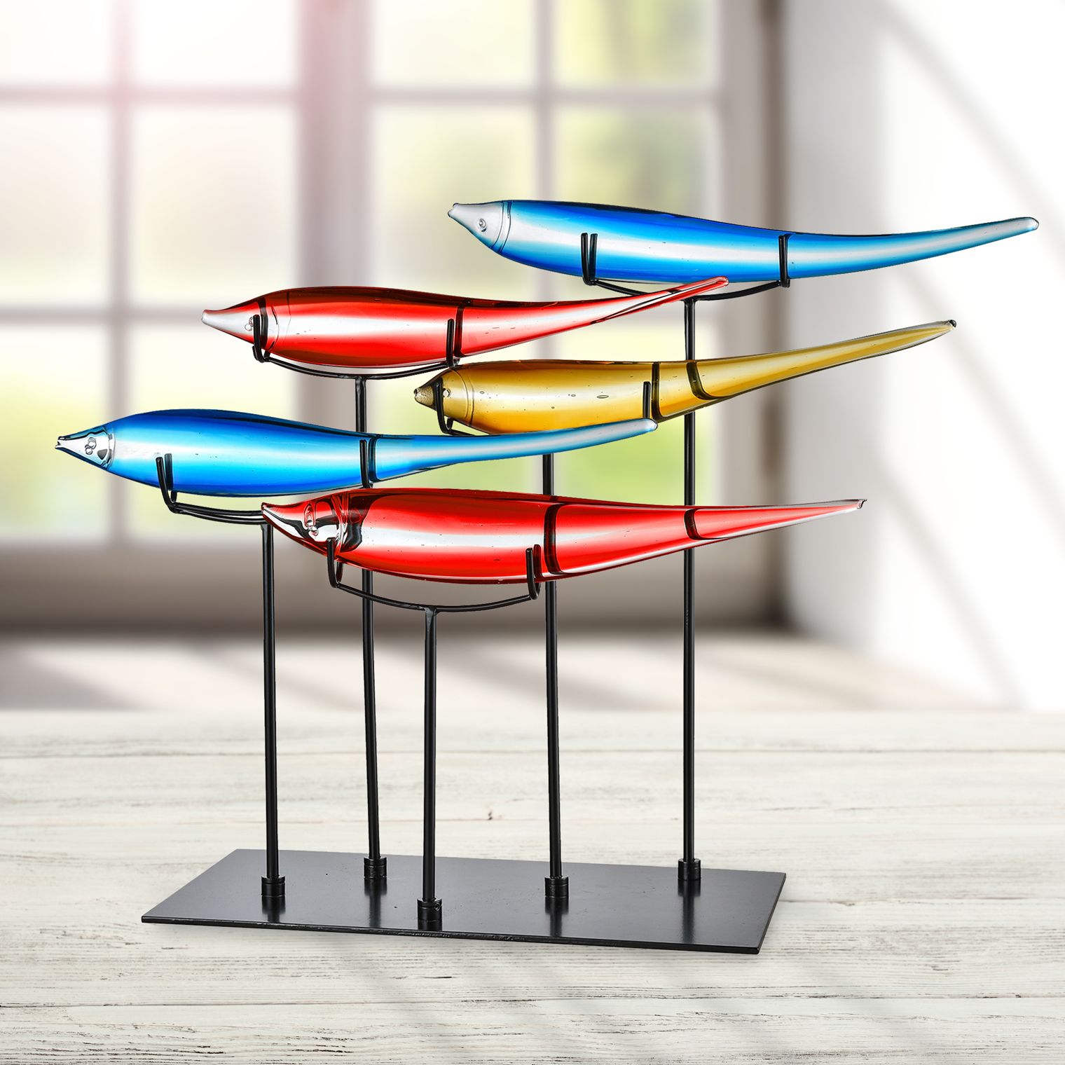 Dale Tiffany 19" Tall 5 Multicolor Fish Handcrafted Art Glass Figurines