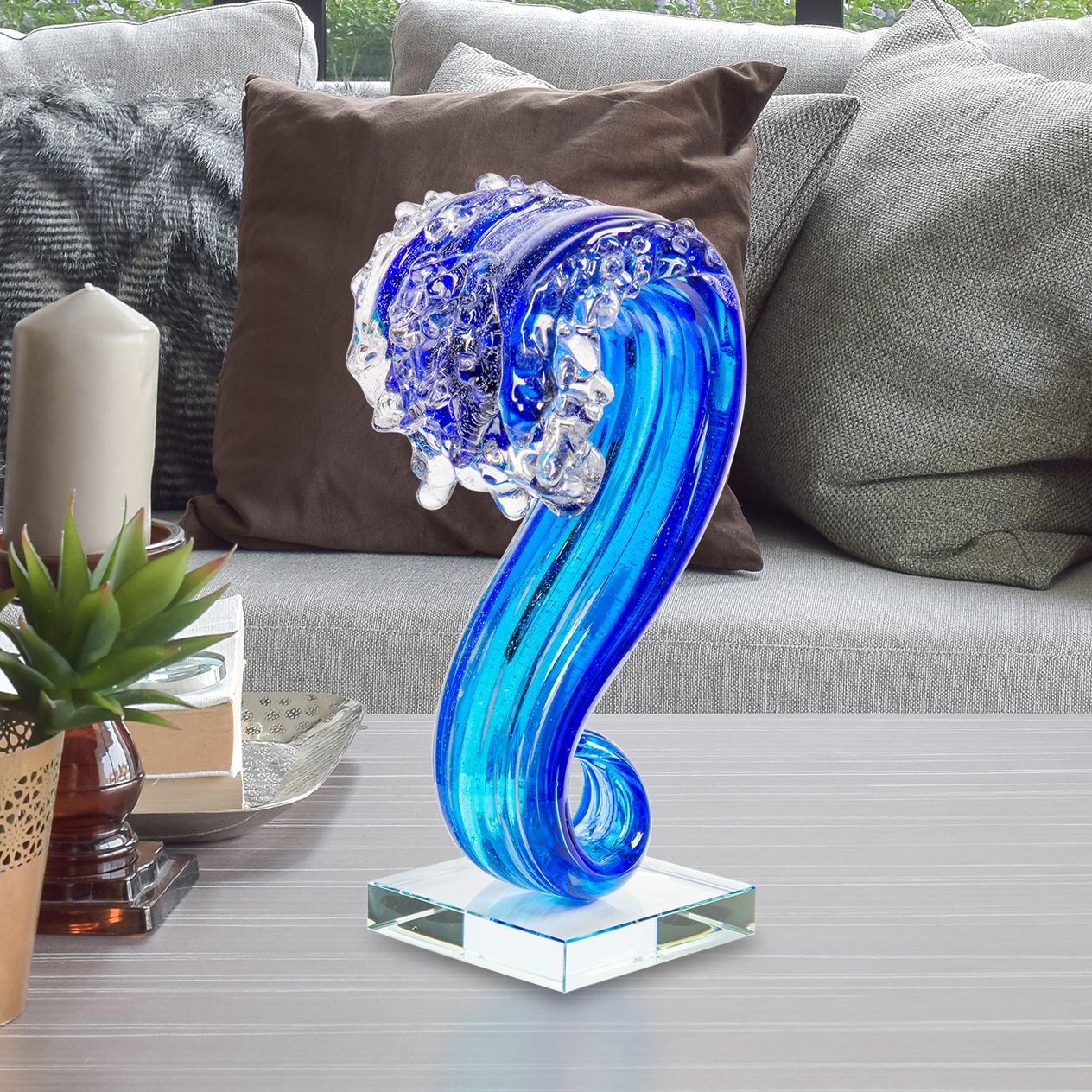Dale Tiffany 11.5" Tall Pacific Wave Handcrafted Art Glass Sculpture