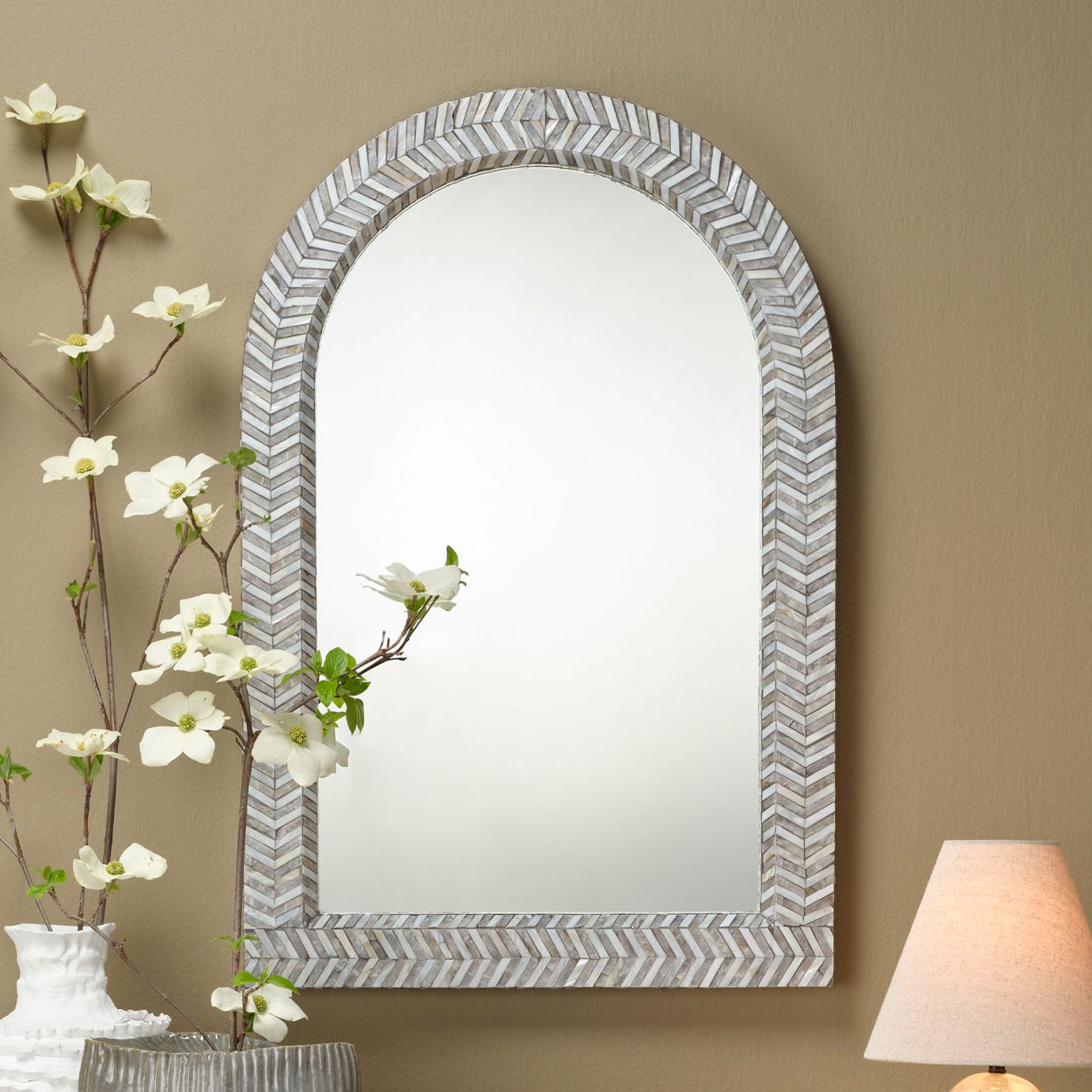 Jamie Young Beverly Mother of Pearl 36" x 24" Arch Wall Mirror